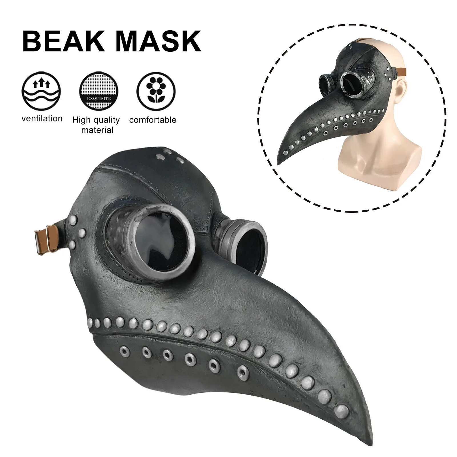 Чума доктор птица маска-Латекс длинный нос клюв костюм в стиле стимпанк для косплея маска на Хэллоуин, для взрослых детей Хэллоуин косплей вечерние реквизитХарактеристика:1. Высококачественные материалы, прочные: изготовлены из высококачественных материалов и высококачественного латекса, прочные и удобные в носке.2. Удобные и дышащие: дизайн вентиляционных отверстий делает владельца более комфортным и дышащим через рот и ноздри маски.3. Регулируемый размер: повязка на голову может регулироваться, что подходит для большинства людей.4. Подходит для всех случаев: маска доктора, Хэллоуин, маскарадный мяч, карнавал, Рождество, Пасха, новый год, панк-шоу, готическое шоу, карнавал, вечерние или любые другие мероприятия.Спецификация:Цвет: как показаноМатериал: латексРазмер: один размер (регулируемая повязка на голову, подходит для большинства взрослых или детей)Общая длина: 34 смУпаковка: OPP мешокСтиль:A: черный клюв, медьB: черный клюв, серебристыйC: медный клюв, сереброПримечание:1. Из-за различных настроек монитора и светильник эффект, фактический цвет элемента может быть s светильник ly отличается от цвета, представленного на снимках. Спасибо!2. Возможны отклонения в 1-2 см вследствие измерений вручную.