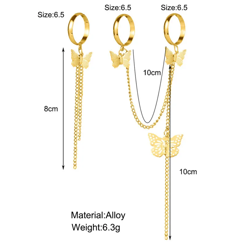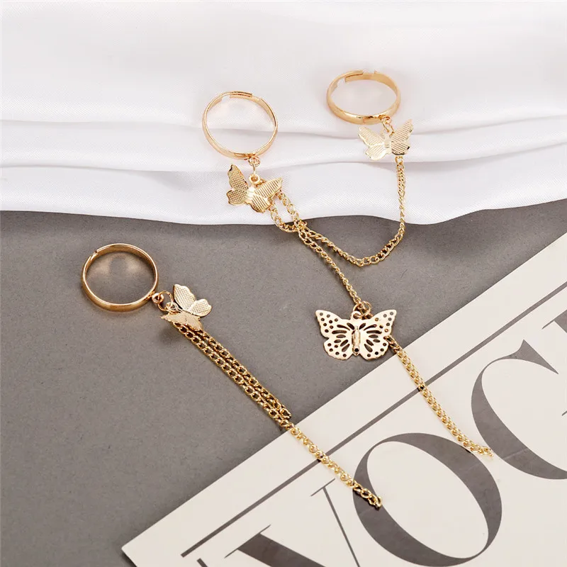 Модные кольца в стиле панк с цепью и бабочкой, многослойные крутые ...