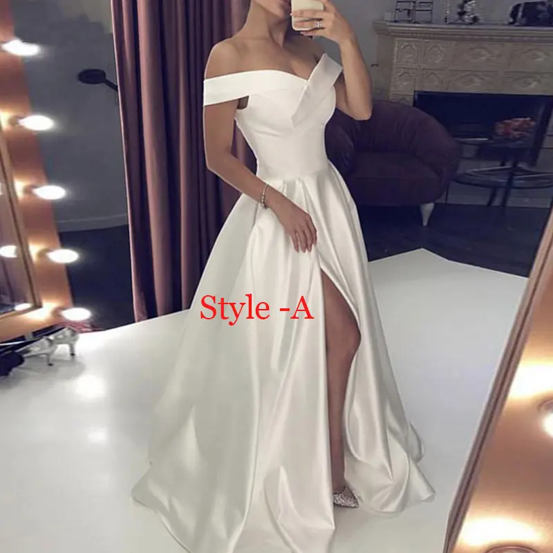 Простой сатин с открытыми плечами свадебное платье; Robe De Mariage...
