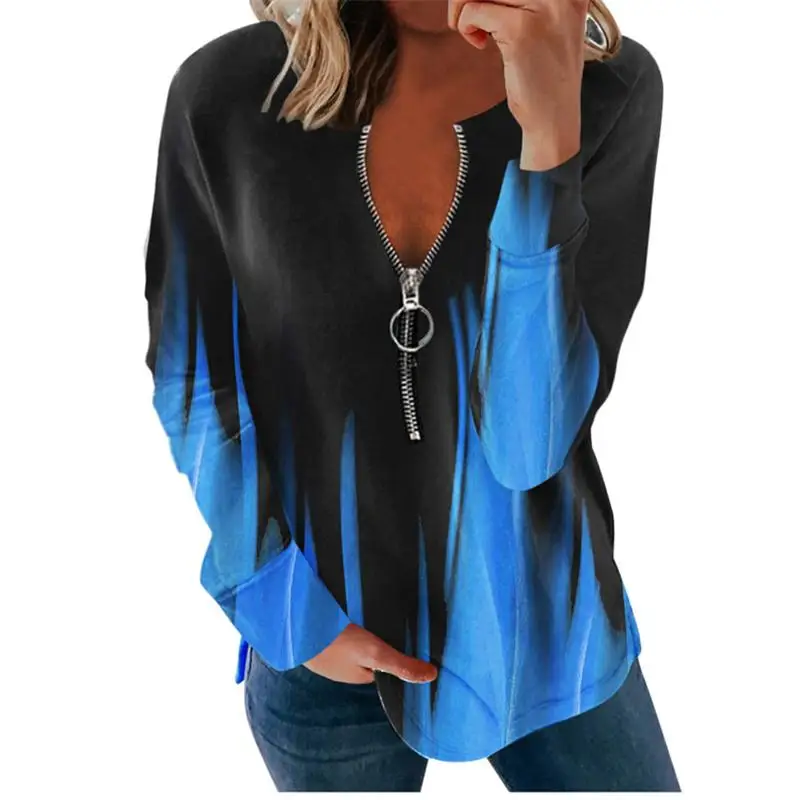 Женский пуловер с градиентным принтом, повседневный свитшот на молнии с длинным рукавом, одежда для улицы, осень 2021