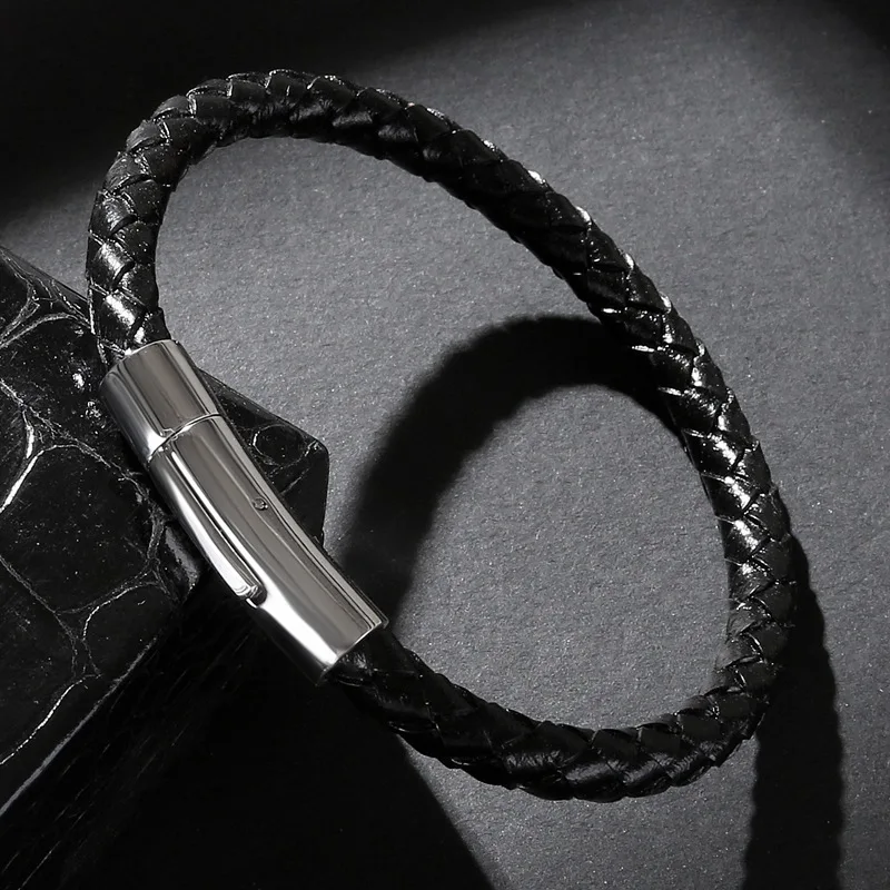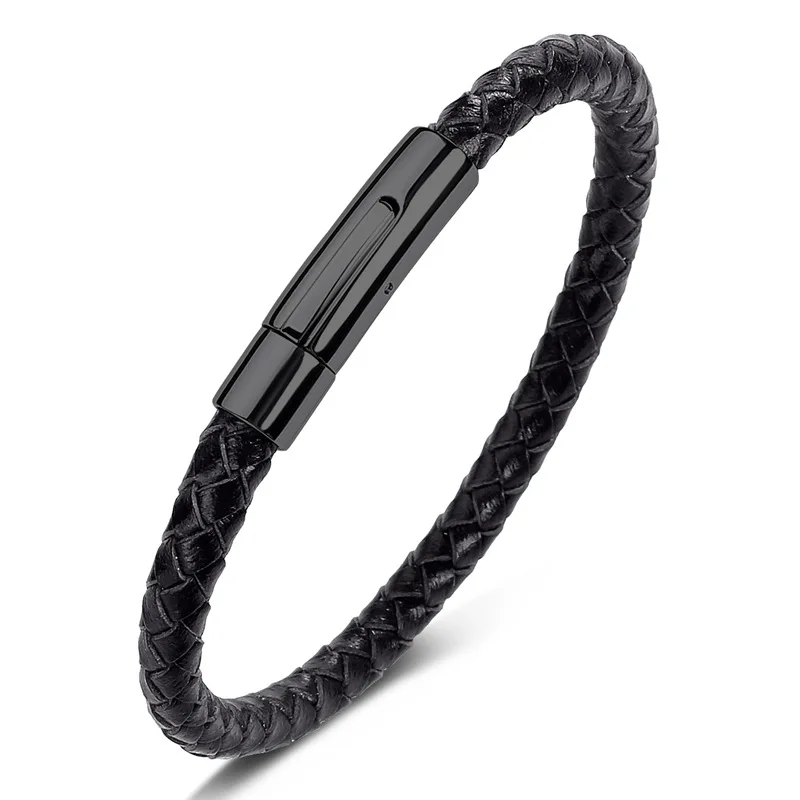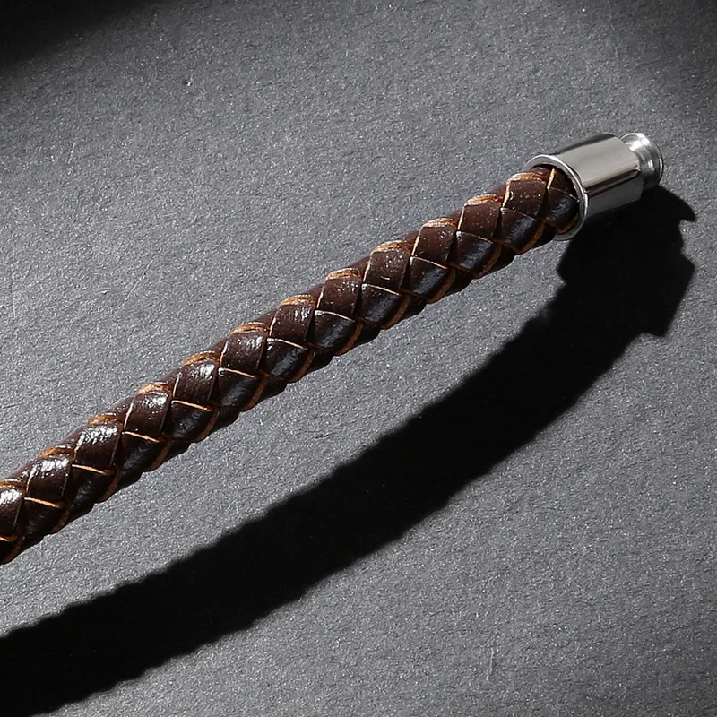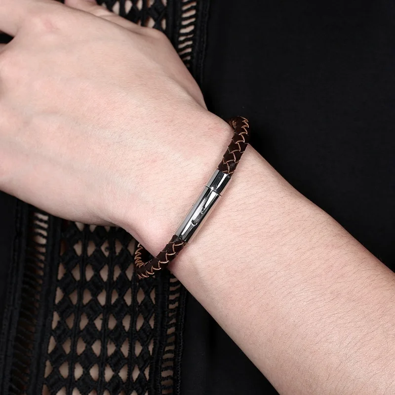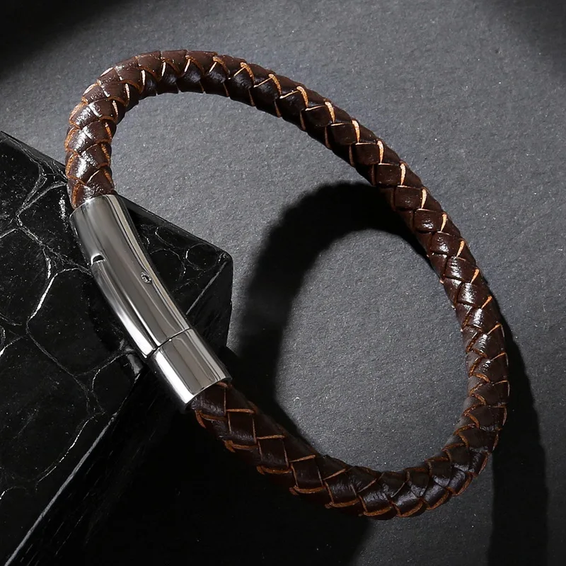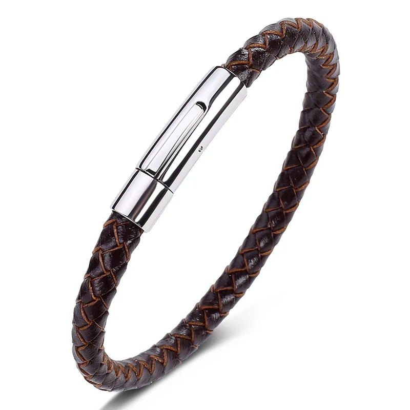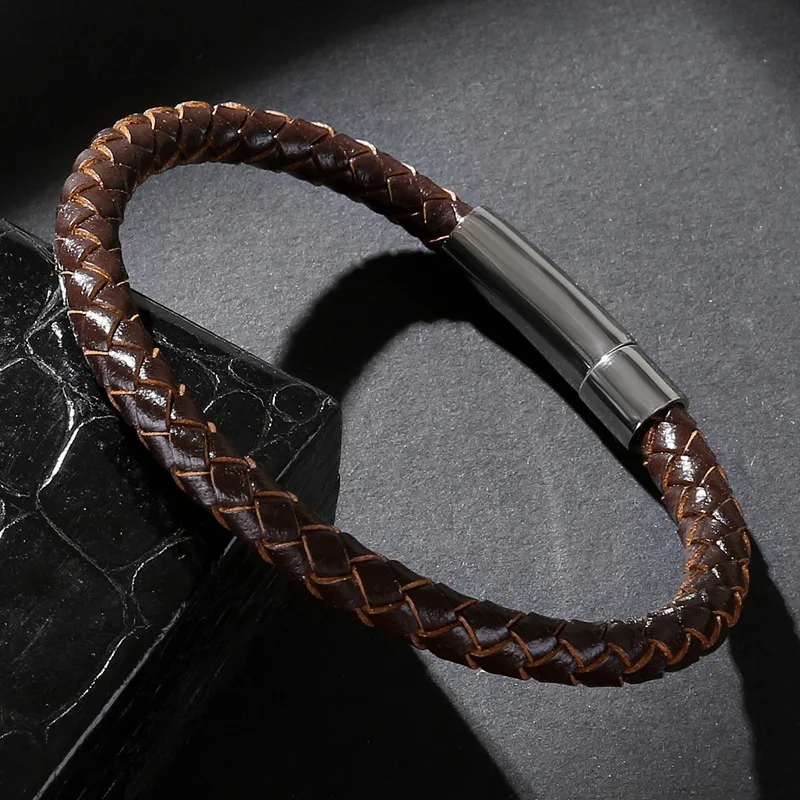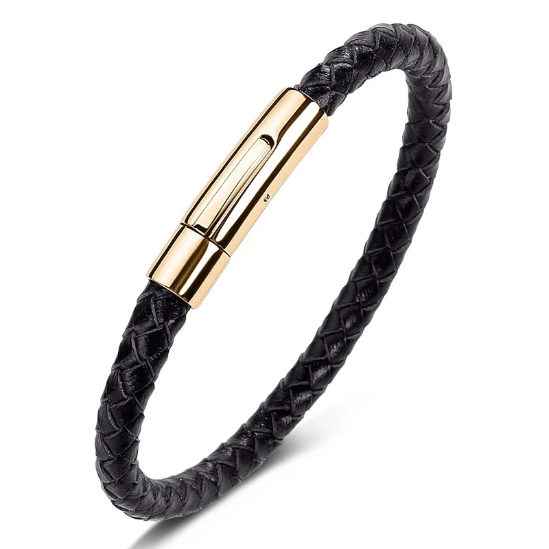 Браслет из натуральной кожи для мужчин и женщин, классический золотистый браслет из нержавеющей стали, цвет черныйкоричневый, 192123 см