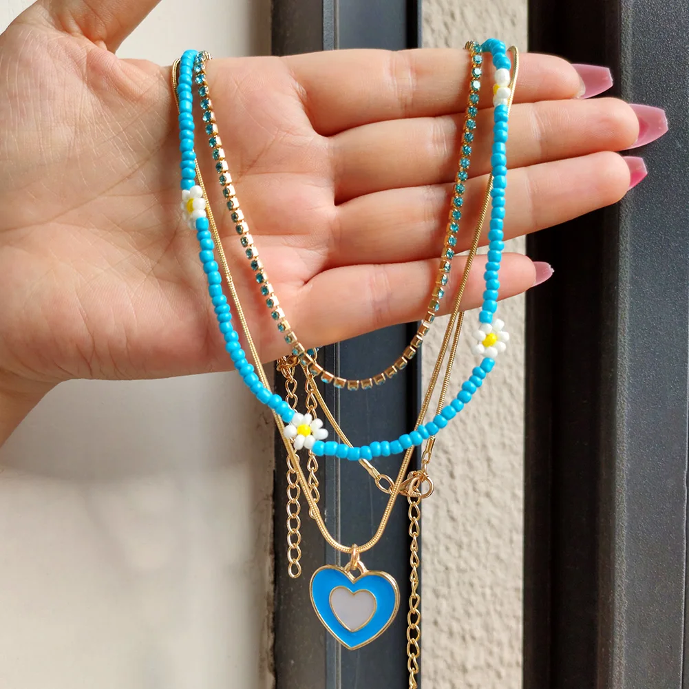 Многослойное синее многослойное ожерелье с маргариткой и бисером для женщин, ручная работа, Цветочный бисер, чокер, богемные ожерелья, оптовая продажа ювелирных изделий