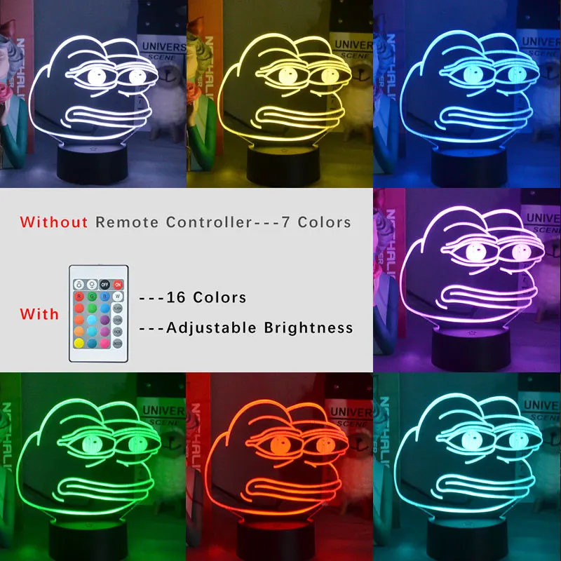 Модные Meme Sad Frog 3D иллюзия прикроватная лампа светодиодное освещение праздник Декор для спальни ночник милый подарок на день рождения лампа