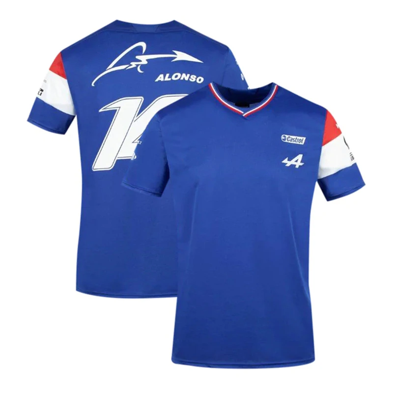 2021Alpine1 Испания F1 команда мотоспорта Алонсо гоночный автомобиль FansT-рубашка синяя черная дышащая футболка с коротким рукавом Новинка