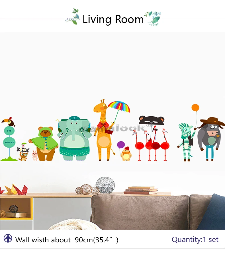 Наклейки на стену для автобусной станции из мультфильма «Зоопарк»