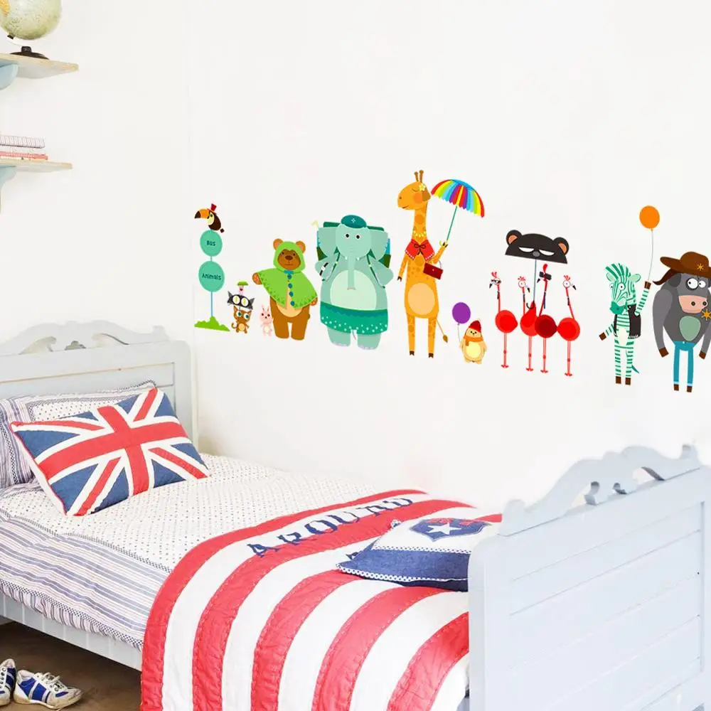 Мультфильм Зоопарк автобусная станция настенные наклейки для детей детские комнаты декор роспись художественные переводки детские животные наклейки
