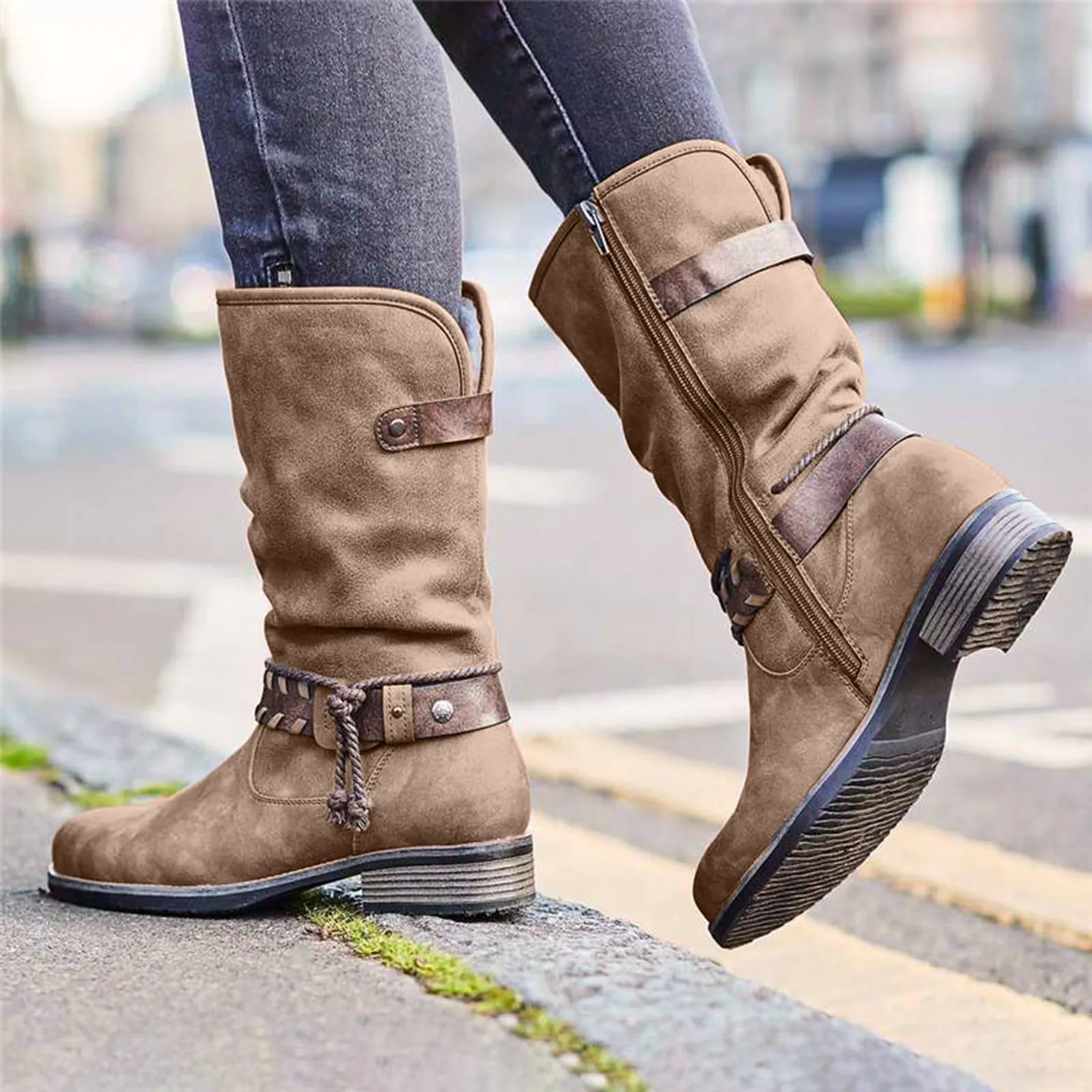 Женские Модные кожаные ботинки средней длины, однотонные повседневные длинные ботинки на молнии с квадратным каблуком, зимняя обувь высокого качества #40