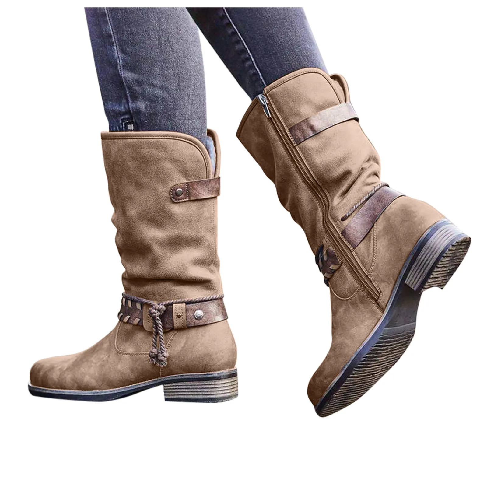 Сапоги женские плиссированные до колена, ковбойские сапоги в западн...