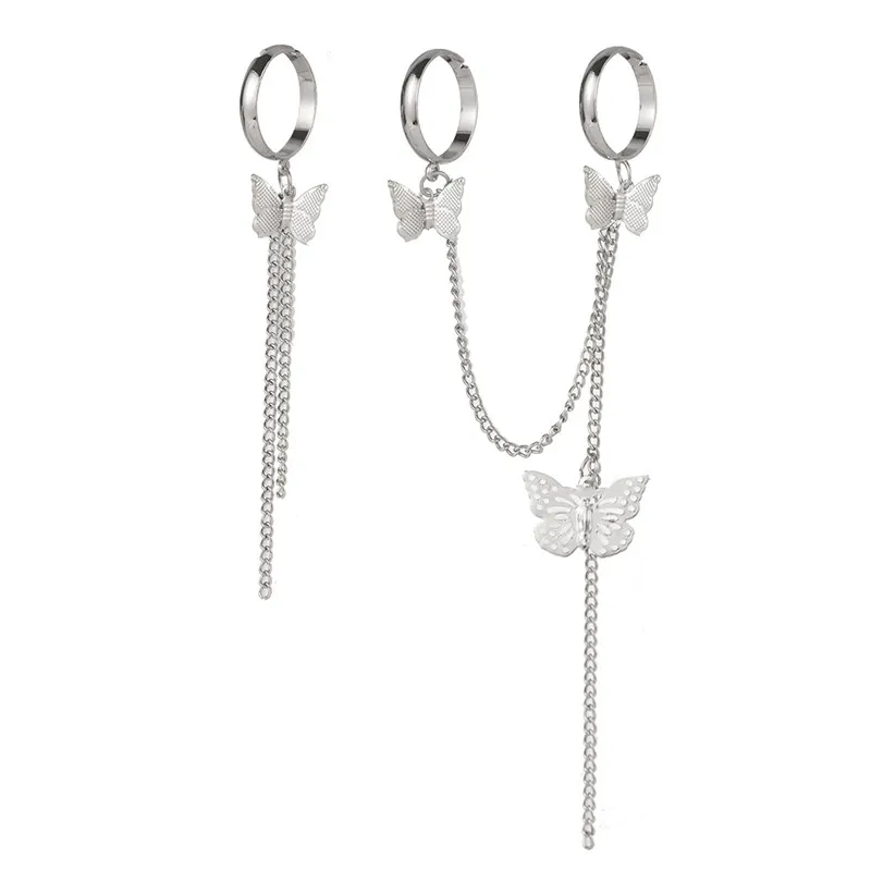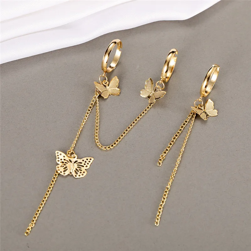 Набор Колец Modyle в стиле хип-хоп для женщин, винтажные кольца на палец в стиле панк, цепь с бабочкой, цвет золото и серебро, Подарочная бижутерия