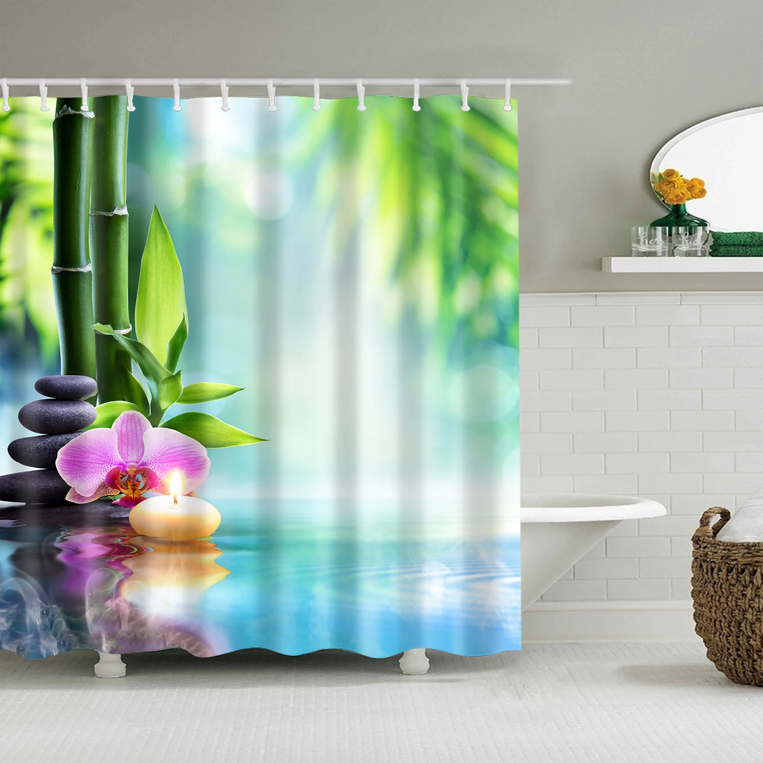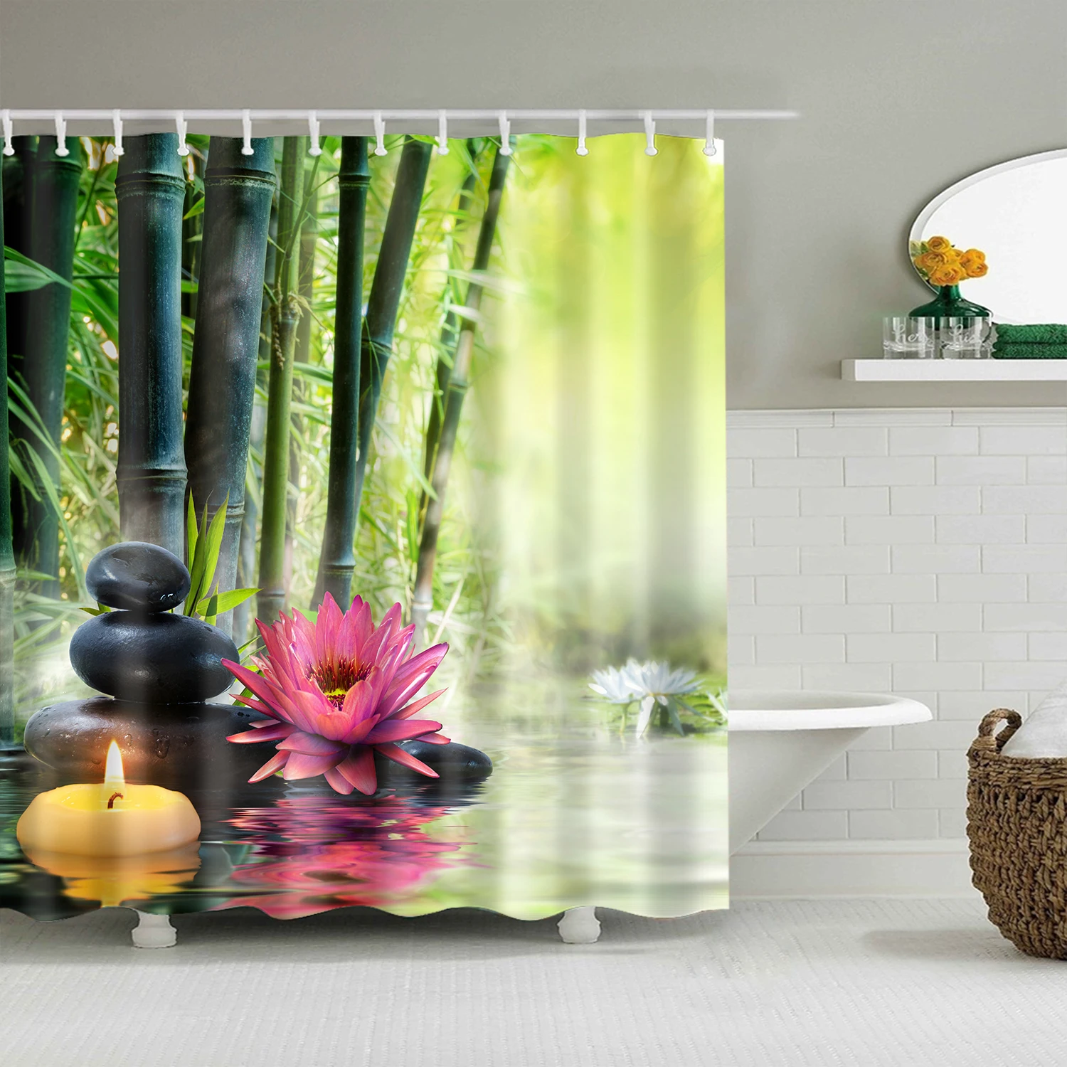 Пейзаж Растения душ Шторы бамбука Лотос цветы 3d для ванной одного ...