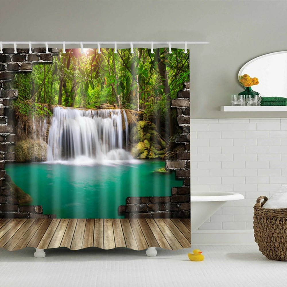 Водонепроницаемый полиэстер ткань 3D Ванна Шторы лес для Ванная ком...