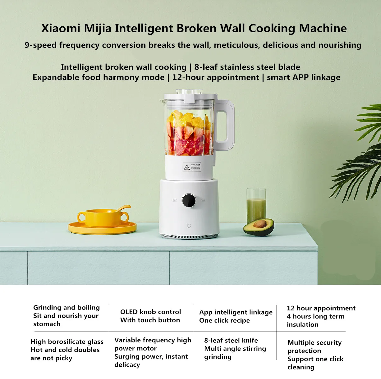 Параметры продукта:Название продукта: интеллектуальное разрушение стены машина для приготовления пищиНоминальное напряжение: 220 ВМощность смешивания: 1000 ВтМаксимальная емкость горячего напитка: 1200 млРазмер изделия: 188 × 222 × 436 ммМодель продукта: MPBJO01ACMНоминальная частота: 50 ГцМощность нагрева: 800 ВтМаксимальная емкость холодного напитка: 1600 мл