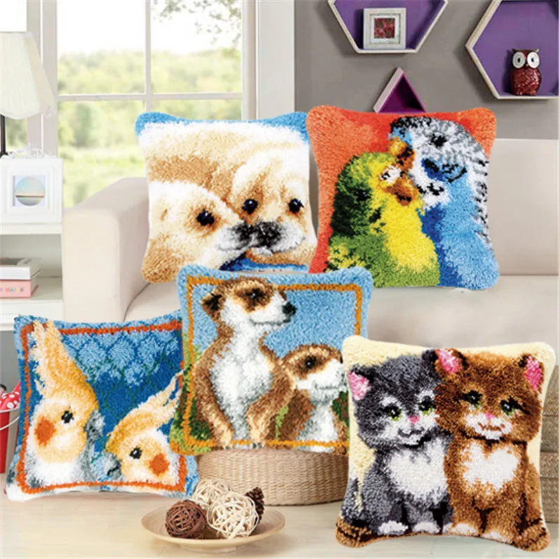 Набор с застежкой-крючком в виде животного, коврики, поделки сделай сам, чехол для подушки в виде собаки, объемная вышивка с кнопкой, вышивка, застежка-крючок, коврик