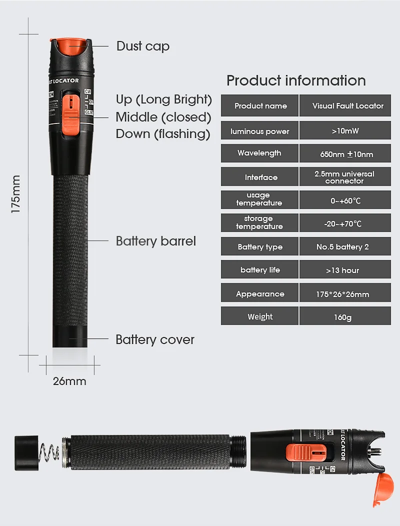 30 мВт FTTH волоконно-оптический тестер Тип ручки красный лазер Опт...