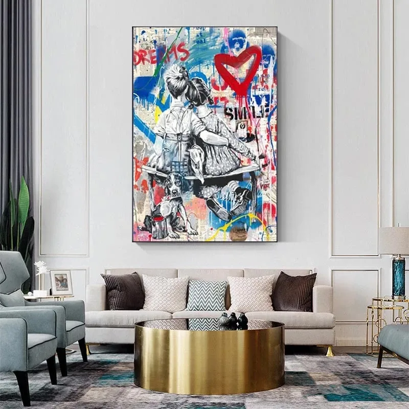 Поп-Улица граффити искусство Любовь Сердце масляная живопись на хол...