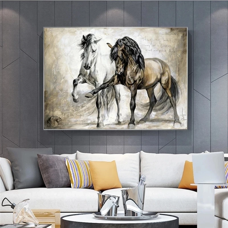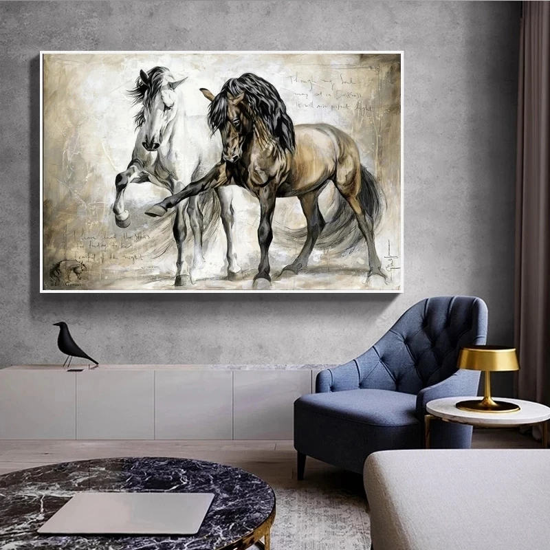 Скандинавская масляная живопись бегущая лошадь на холсте искусство роспись животное плакат картина для европейского классического декора комнаты
