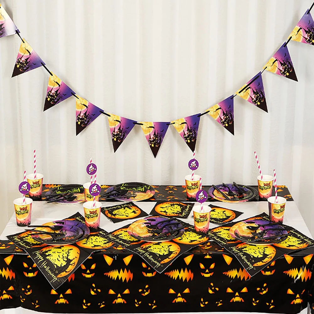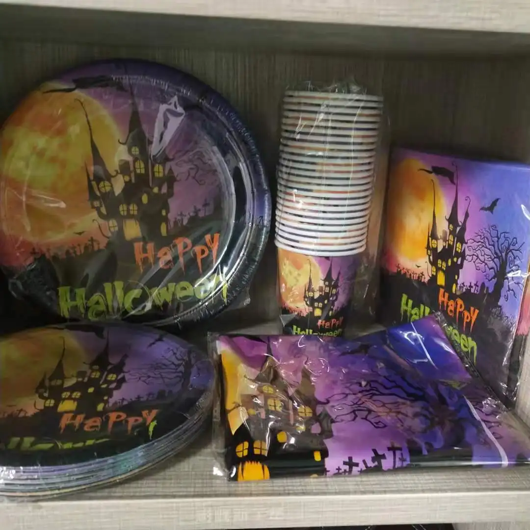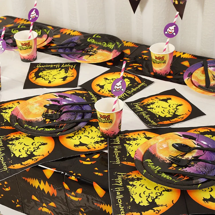 Набор посуды для тематических вечеринок на Хэллоуин, одноразовые бу...