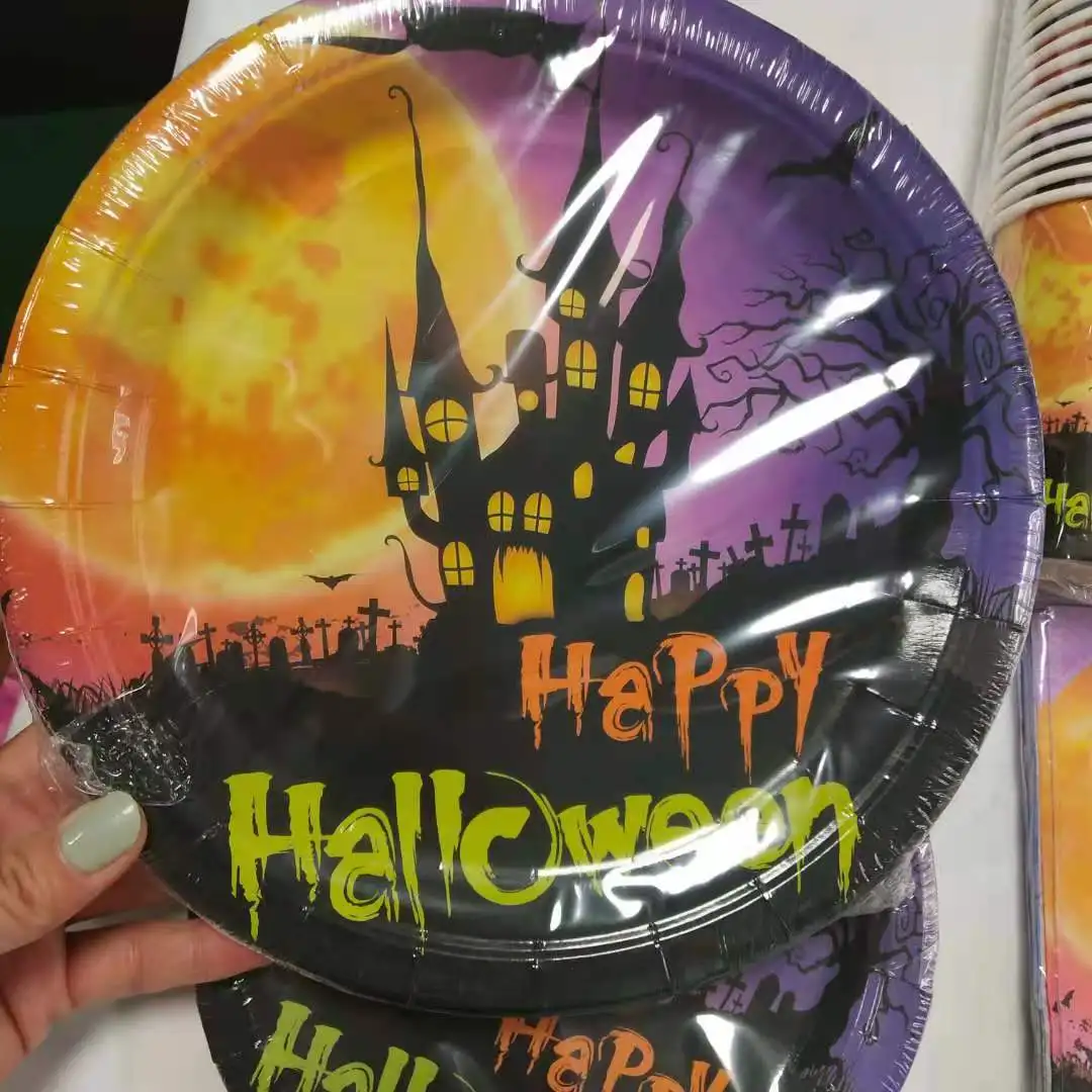 Прямая продажа с фабрики Хэллоуин тематическая вечеринка на день рождения украшения посуда поставки бумажные тарелки призрак замок место проведения