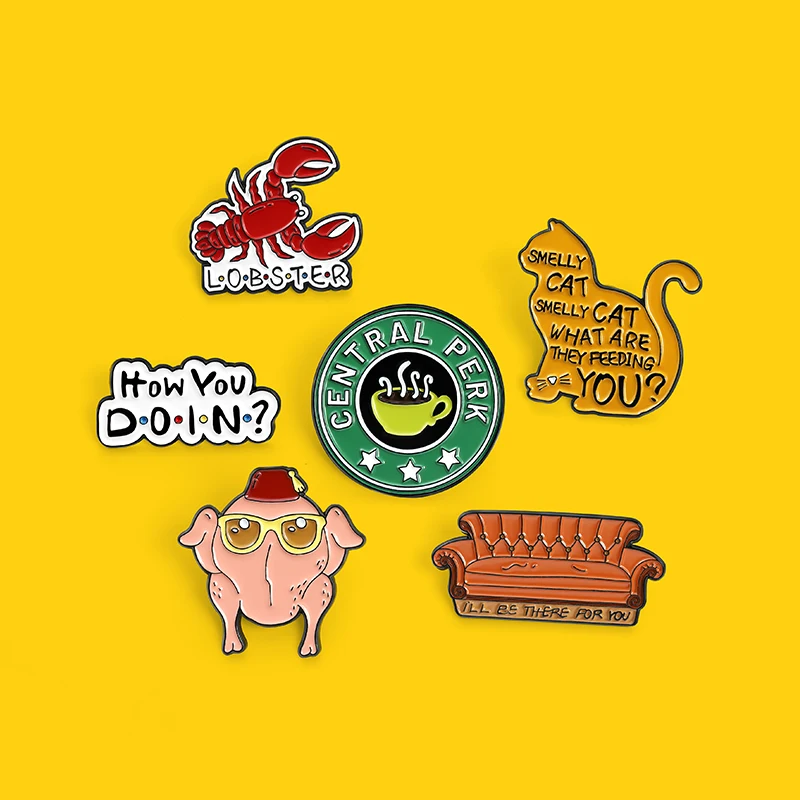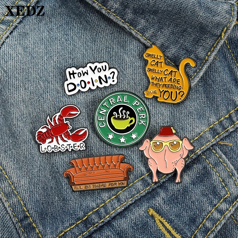 XEDZ модная эмалированная брошь с буквами, кошачьи раки, очки, курица, диван, зеленая круглая кофейная чашка, забавная булавка с отворотом, ювелирное изделие, подарок