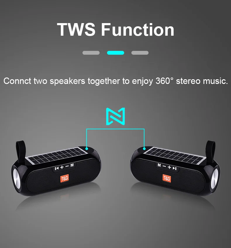1. Эти портативные колонки поддерживают зарядку от солнечной энергии2. Эти портативные колонки поддерживают все устройства, совместимые с Bluetooth3. Эти портативные колонки поддерживают fm-радио4. Поддержка tf-карты и u-диска;5. Поддержка линии аудиовхода, она может быть непосредственно подключена к мобильным телефонам, планшетам и телевизорам.6. Портативный динамик автоматически отключится через полчаса, если нет подключения bluetooth.7. Его можно использовать парами для достижения стереозвука с двумя каналами-левым каналом и правым каналом.