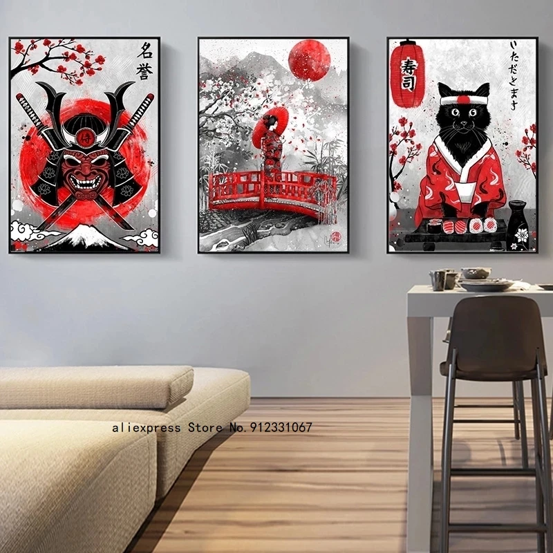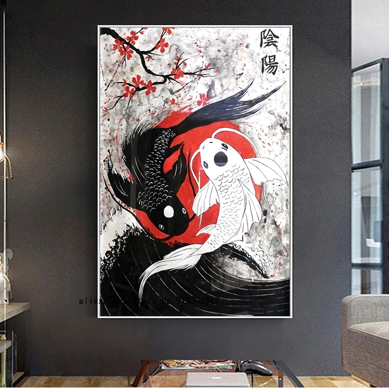 Картина маслом в стиле ретро с изображением японской гейши и рыбы Инь-Янь на холсте искусственная СТЕНА картина самурая домашний декор
