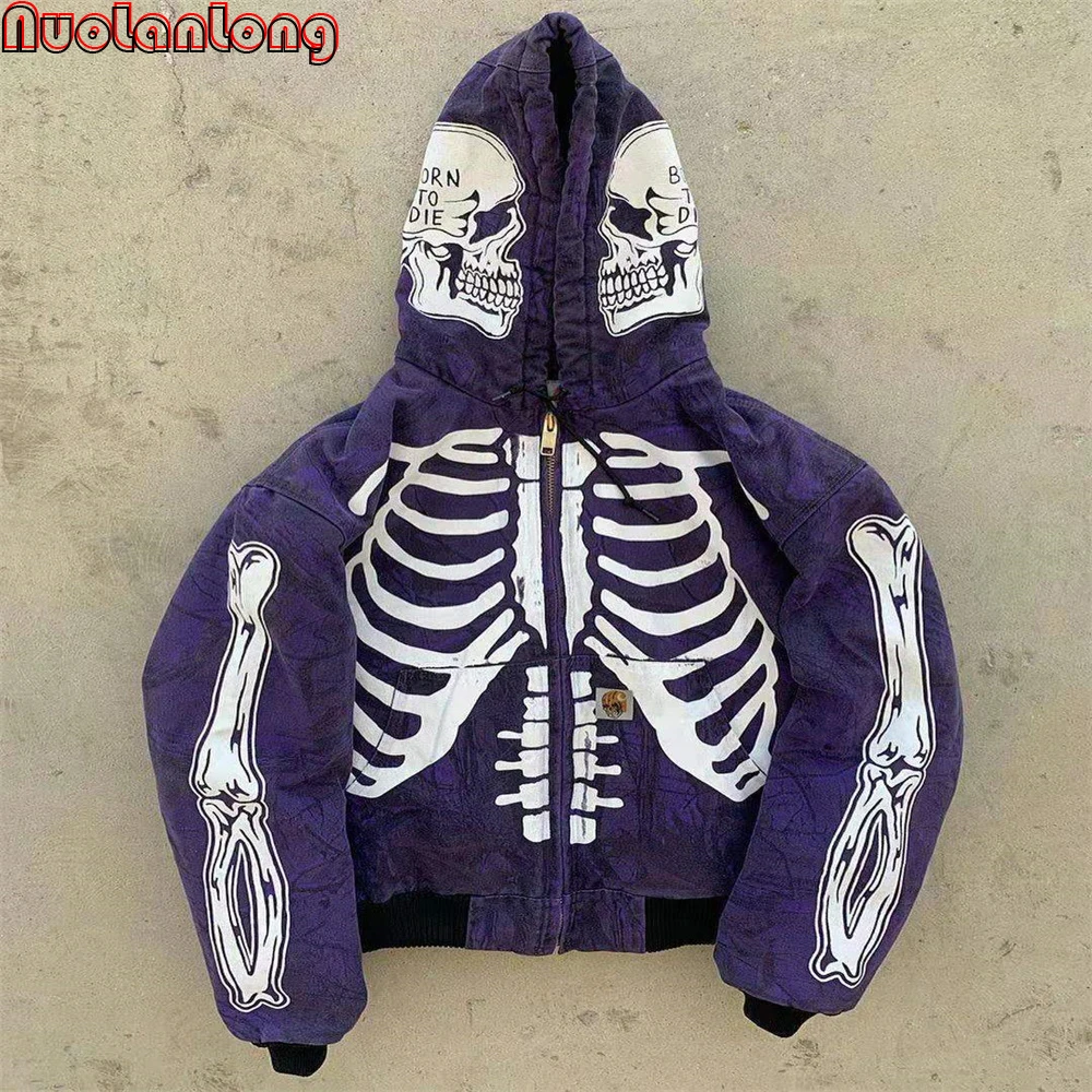 Мужская толстовка на молнии с принтом скелета, уличная толстовка на...