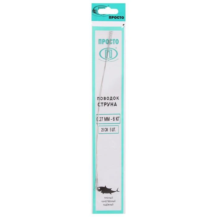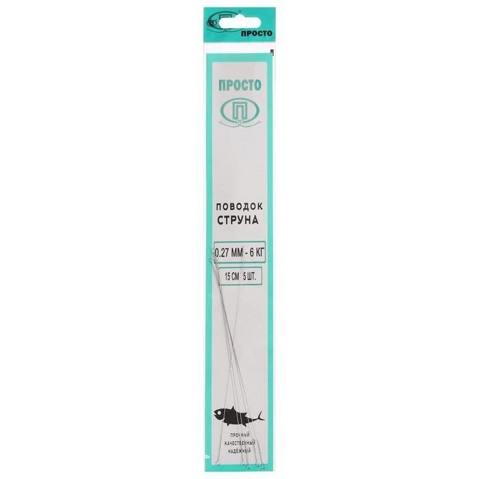 Поводок струна, 5 шт в упаковке, 0,27 мм - 6 кг