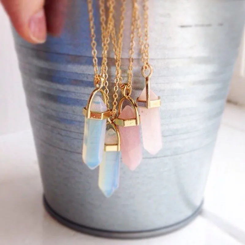 Женское Ожерелье с шестигранной колонной, кварцевое ожерелье с подв...