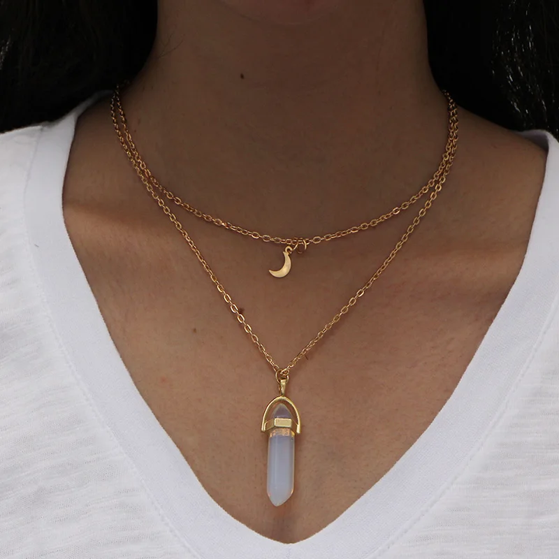 Цепочка с кулоном из натурального камня, в виде двойной Луны