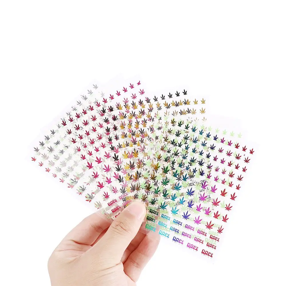 Голографические Типсы для ногтей для девочек, самоклеящиеся, маникюр-наклейки для ногтей украшения в виде Листьев Сорняков