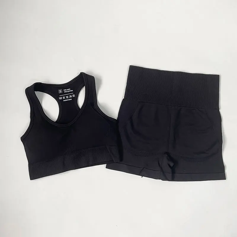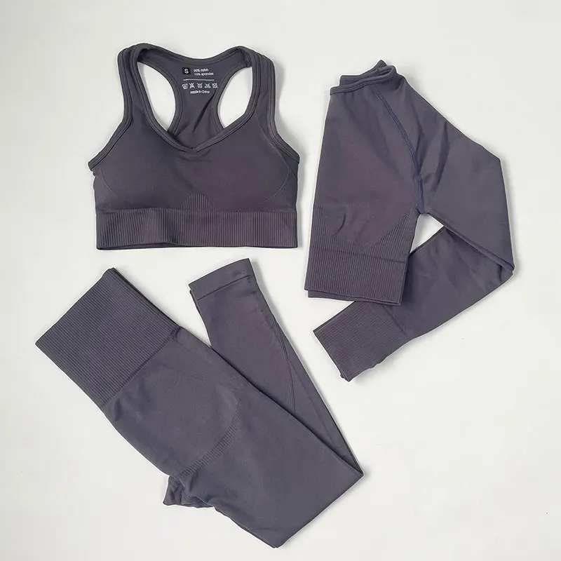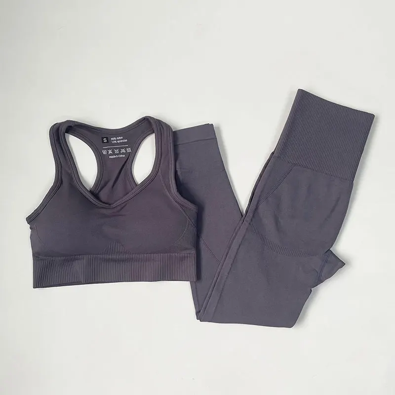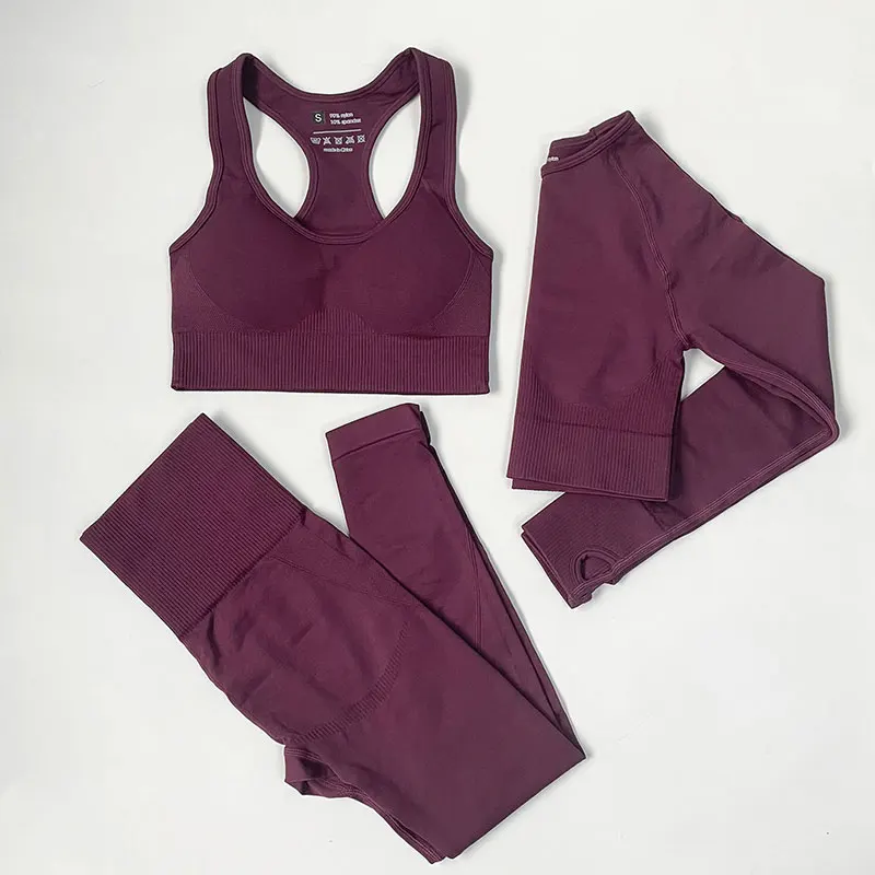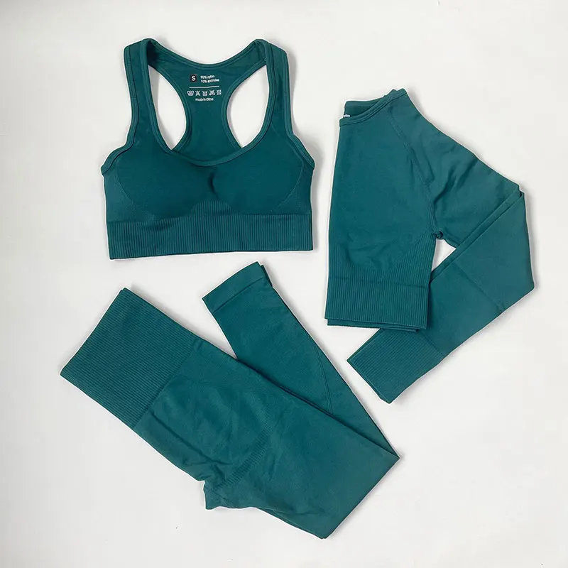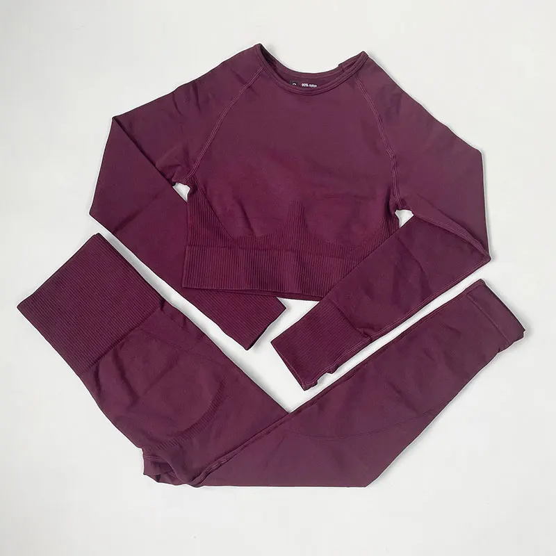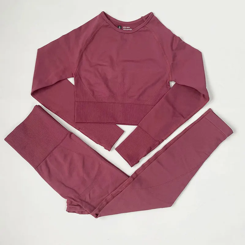 Эластичная бесшовная одежда для йоги с высокой талией, женская одежда для фитнеса, одежда для тренажерного зала, комплект для тренировок, короткий топ с длинным рукавом, леггинсы, спортивный костюм