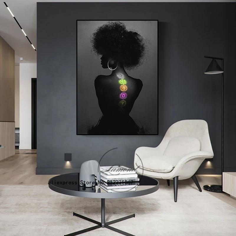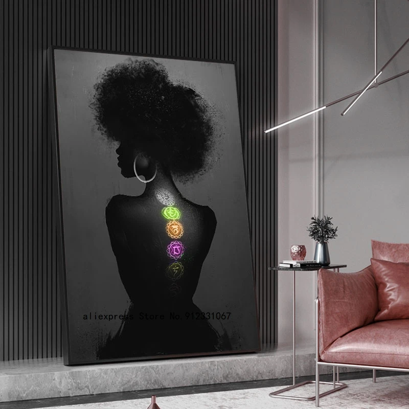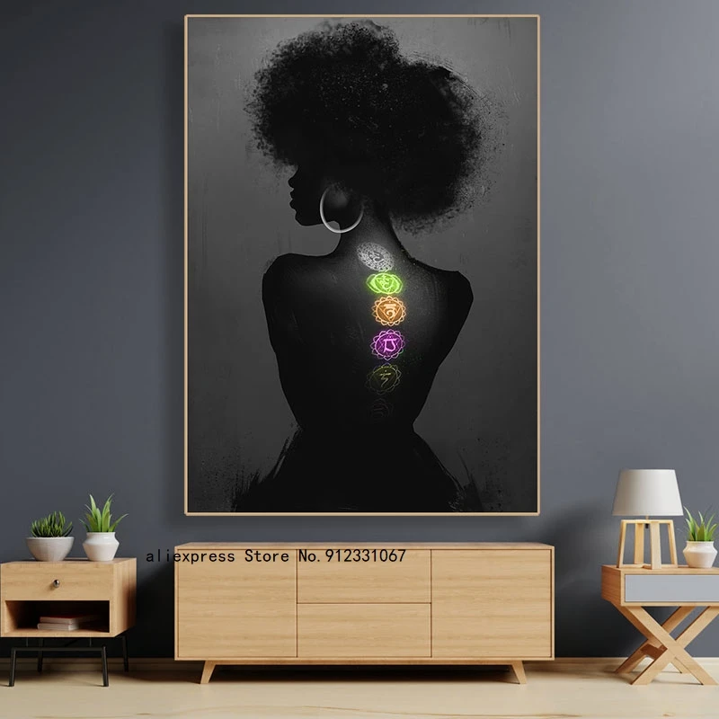 Картины на холсте с изображением Африканской женщины чакры девушки, плакаты и принты йоги, Настенная картина для гостиной, Декор для дома