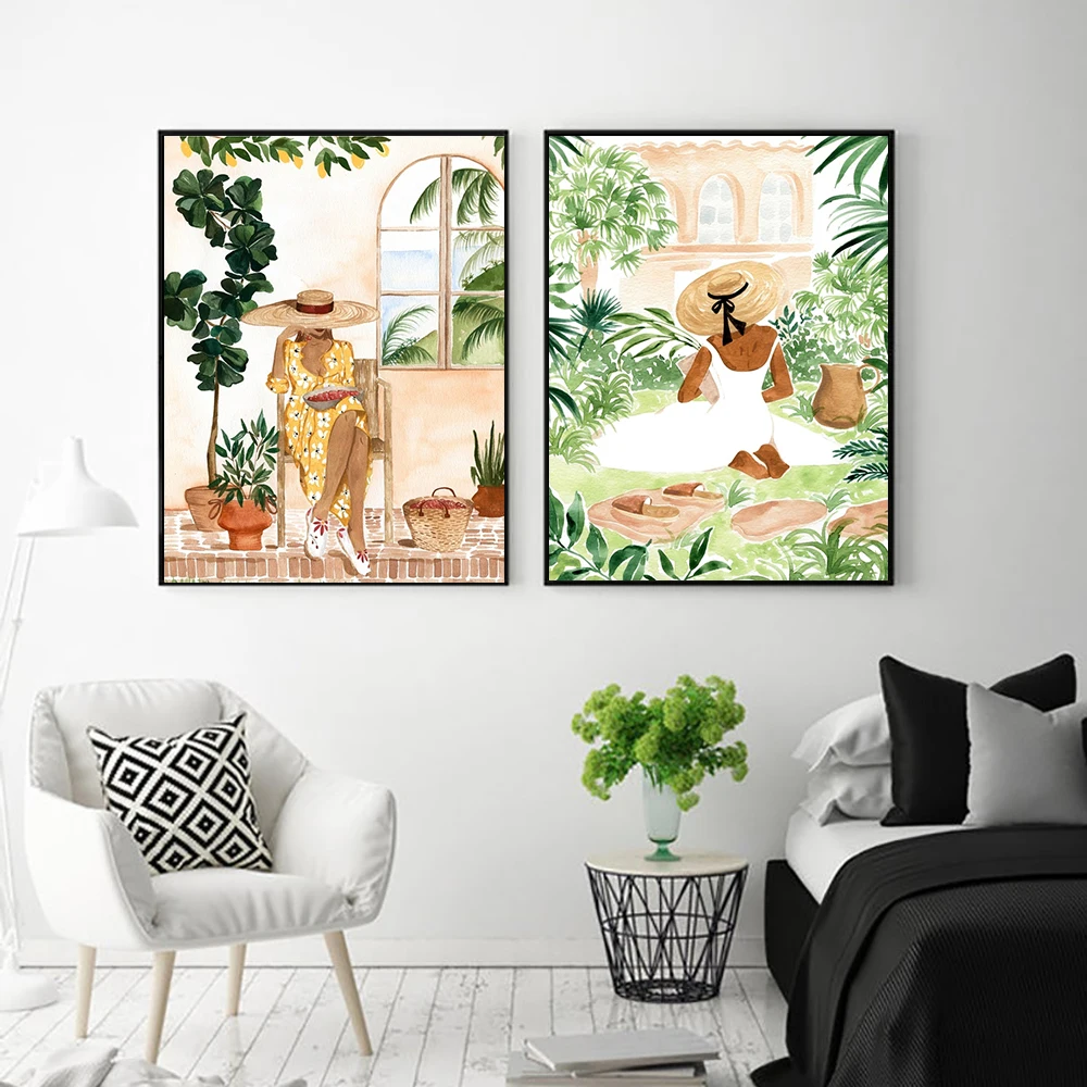 Абстрактная Мода Марокканская девушка цветы Настенная Картина на хо...