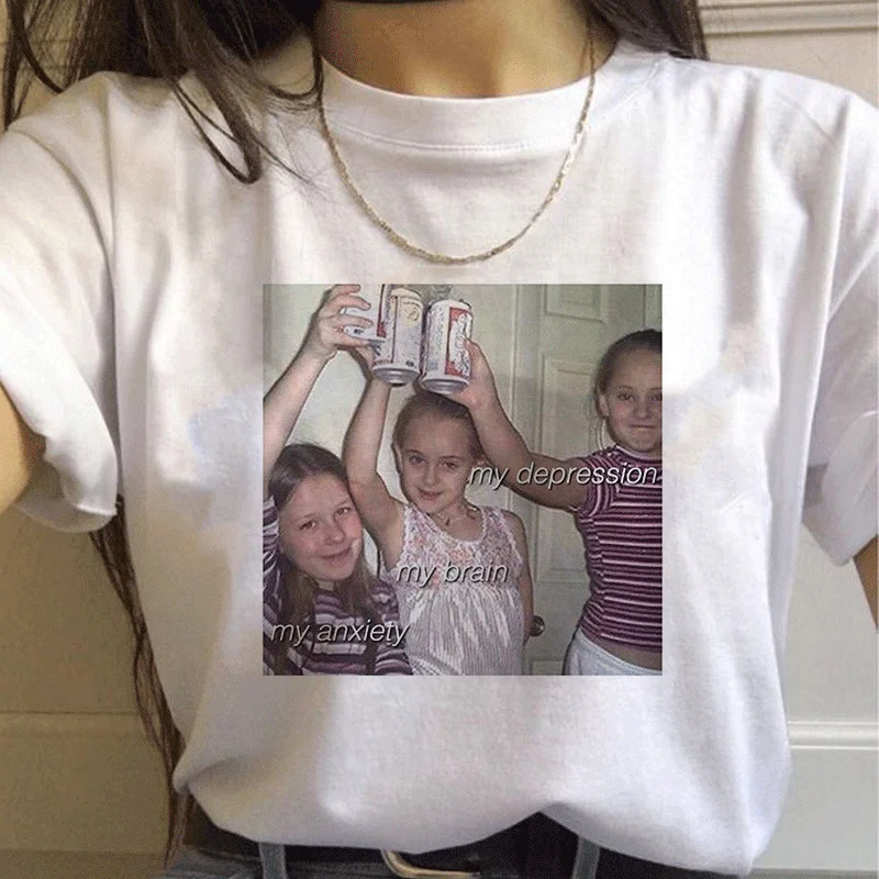 Женская футболка с надписью Моя депрессия мой мозг мой тревога