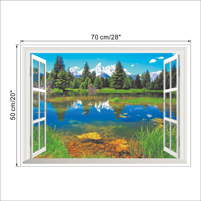 Наклейка на стену в виде Снежной Горы, леса, озера, украшение для гостиной, спальни, 3d наклейка на окно, искусство, природный пейзаж, домашние наклейки, плакат из ПВХ