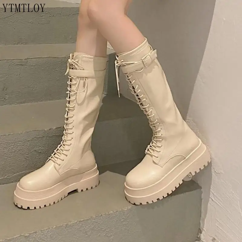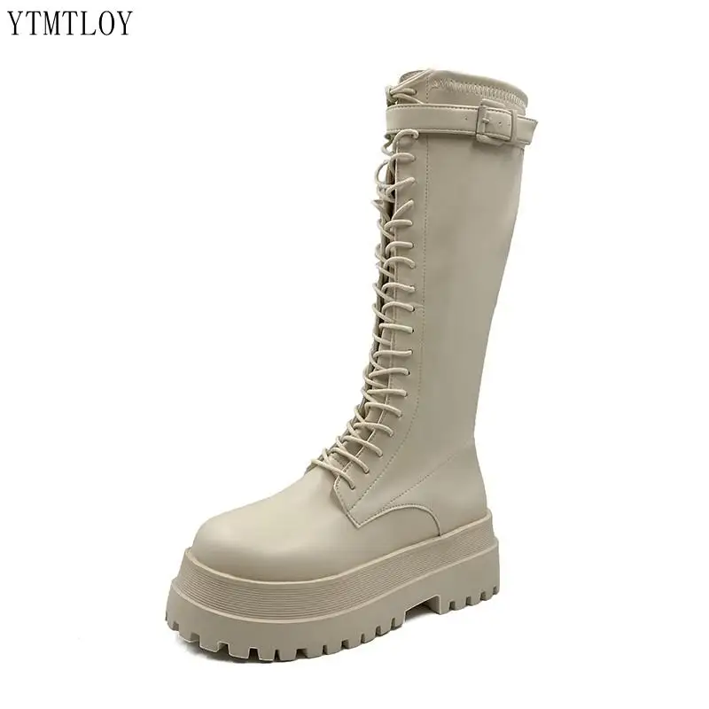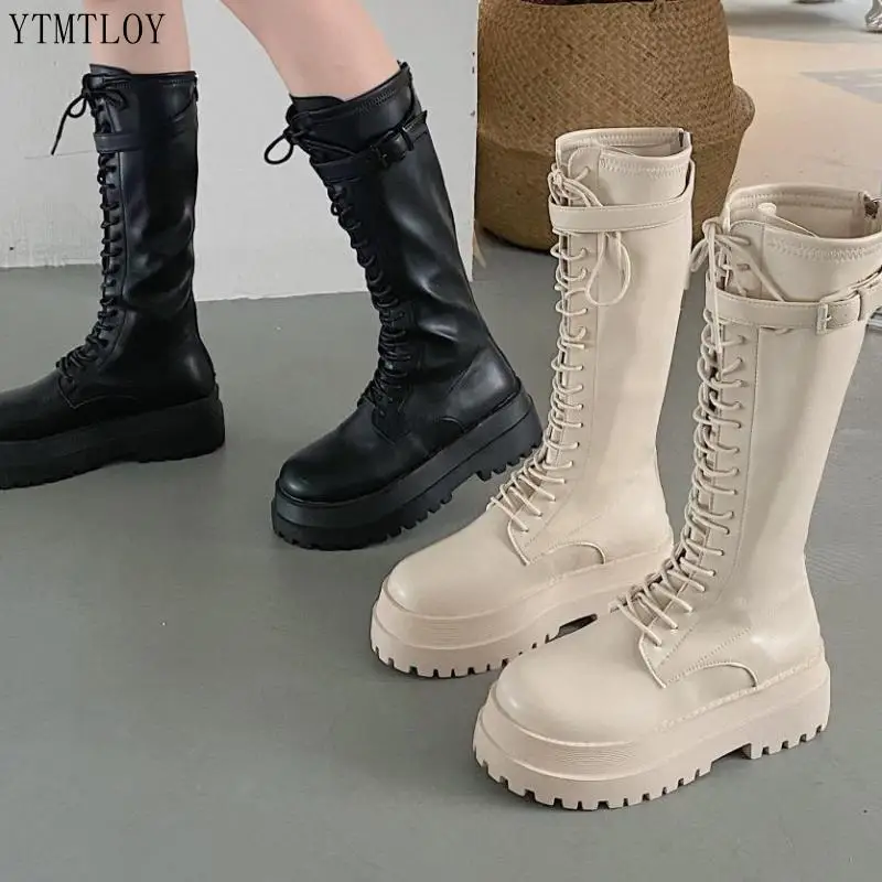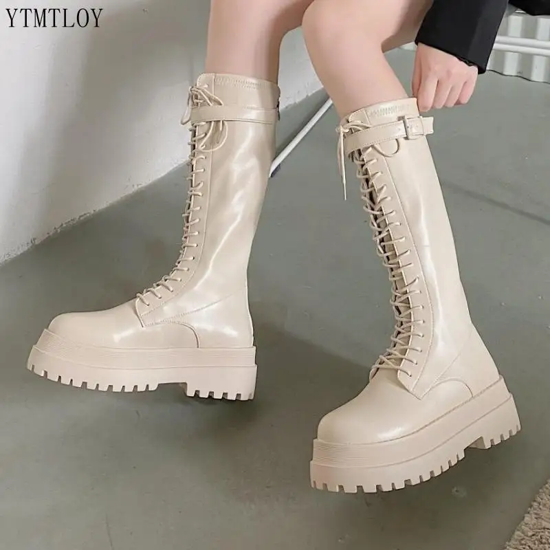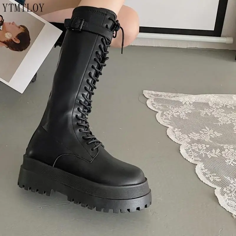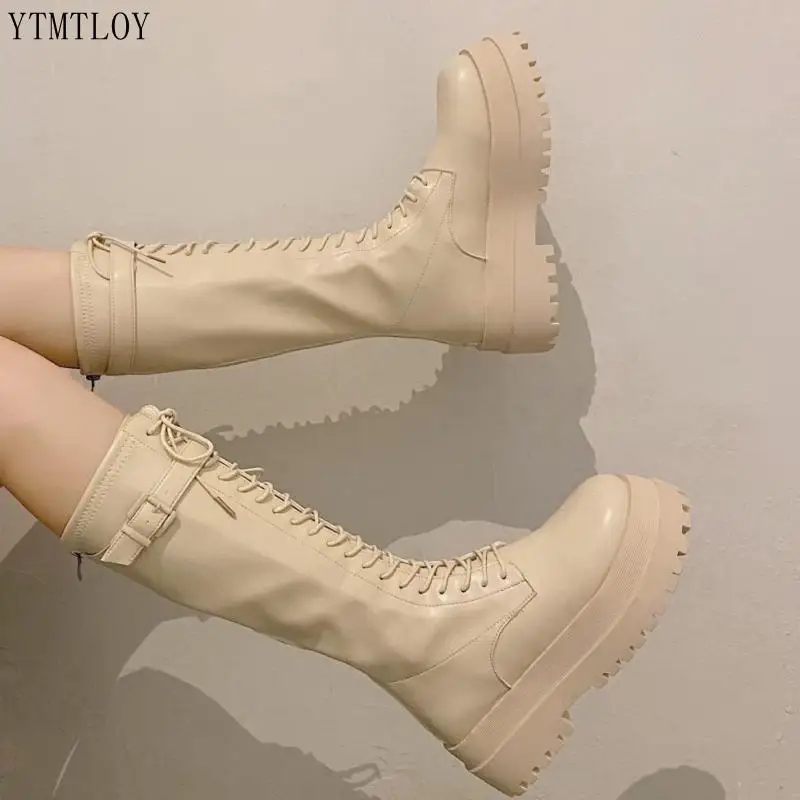 Женские мотоциклетные сапоги на массивной платформе, кожаные сапоги...