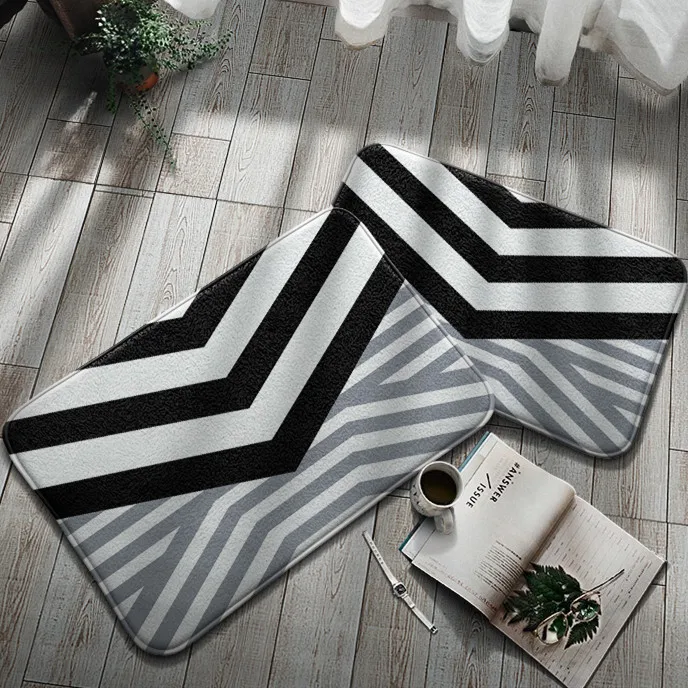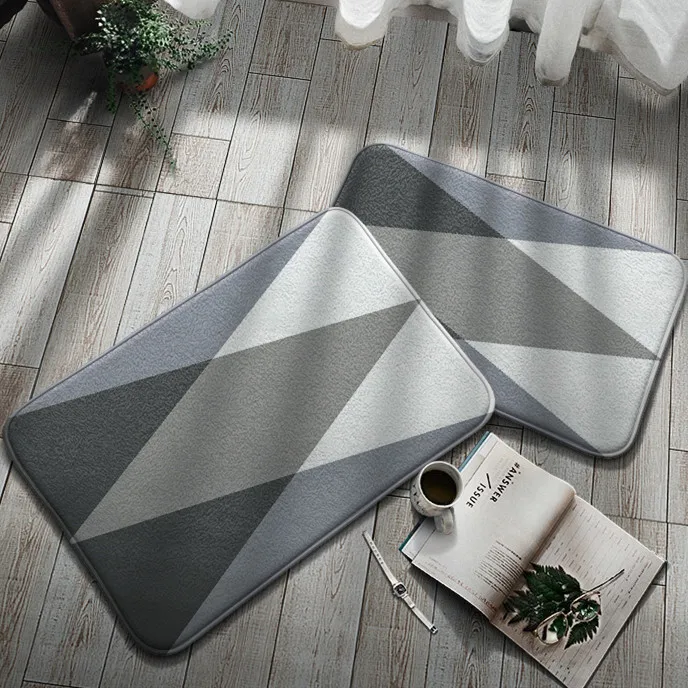 Серый декоративный полосатый коврик с геометрическим рисунком, 40*60 см, маленький ковер для кухни и гостиной, нескользящий напольный коврик для ванной комнаты, мягкий комнатный коврик