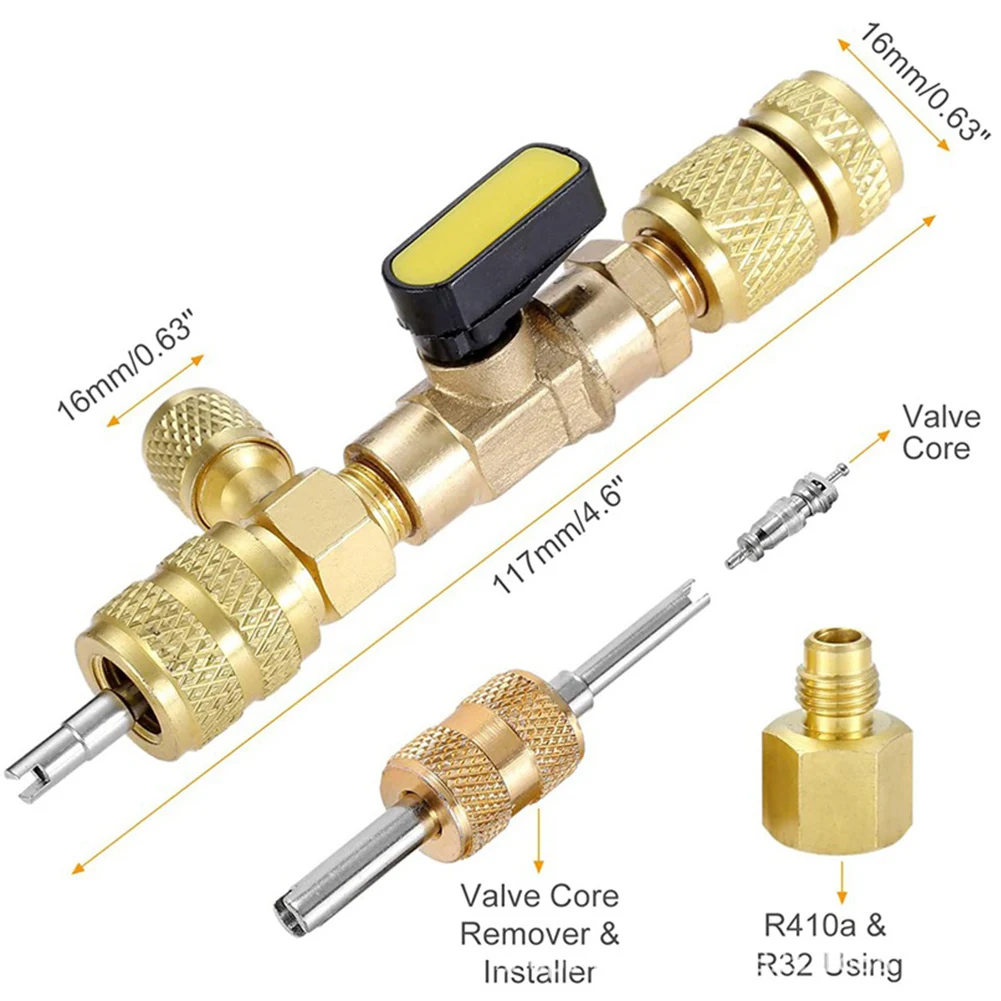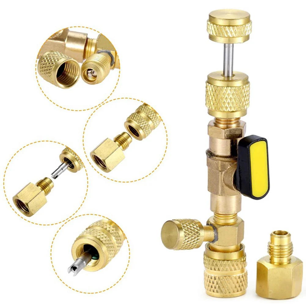Инструмент для снятия сердечника клапана, монтажный инструмент для снятия сердечника клапана HVAC с двумя 14 и 516 сервисными портами, подходящими для R404A R407C R134A R12 R32