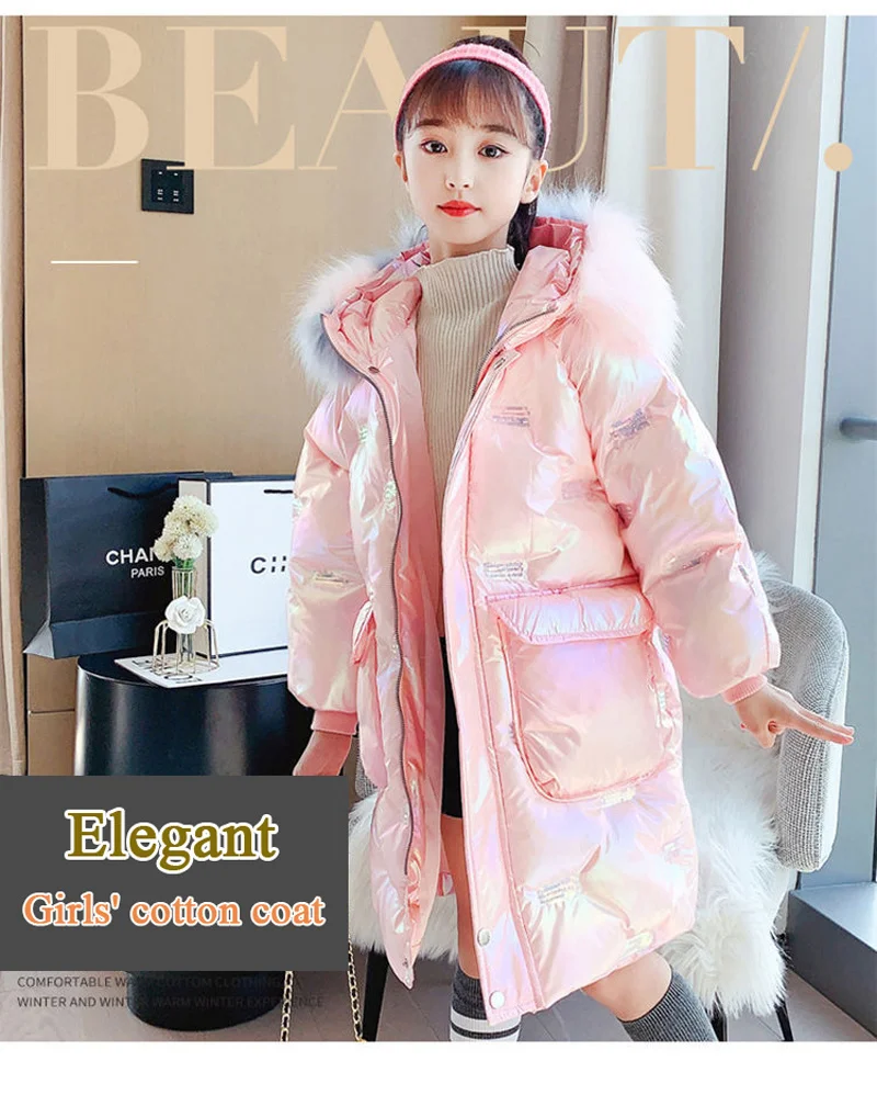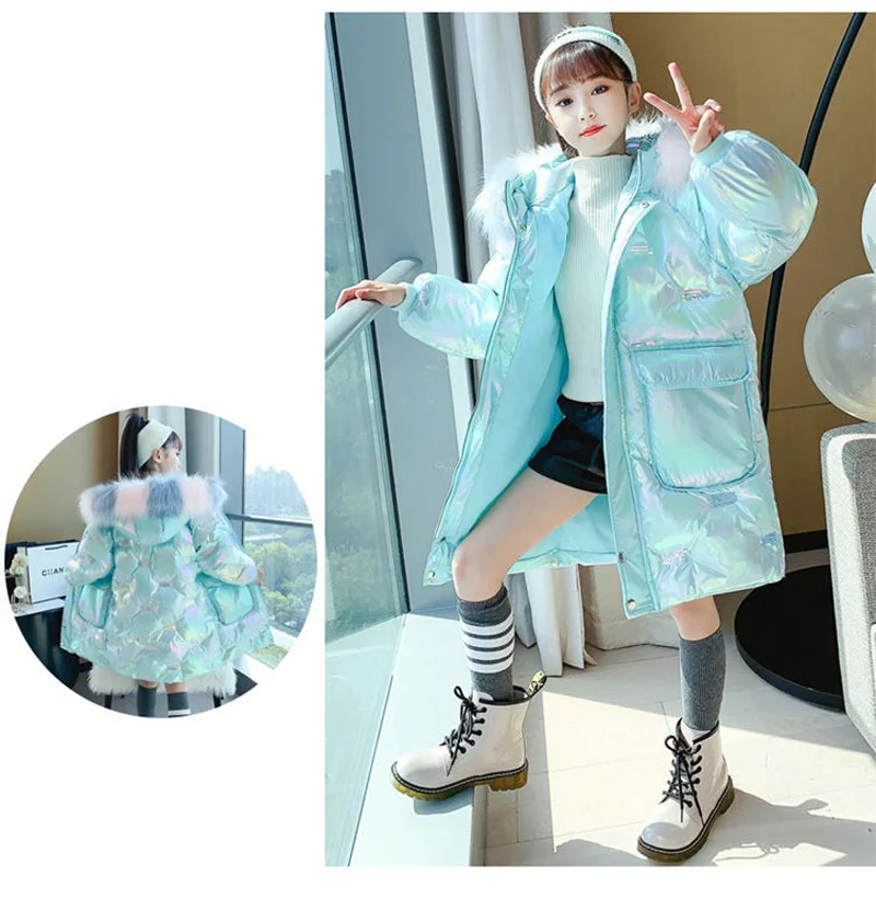 2021 модная одежда для девочек, зимняя куртка с капюшоном, парка, пальто с искусственным мехом, детская утепленная яркая верхняя одежда, зимний комбинезон