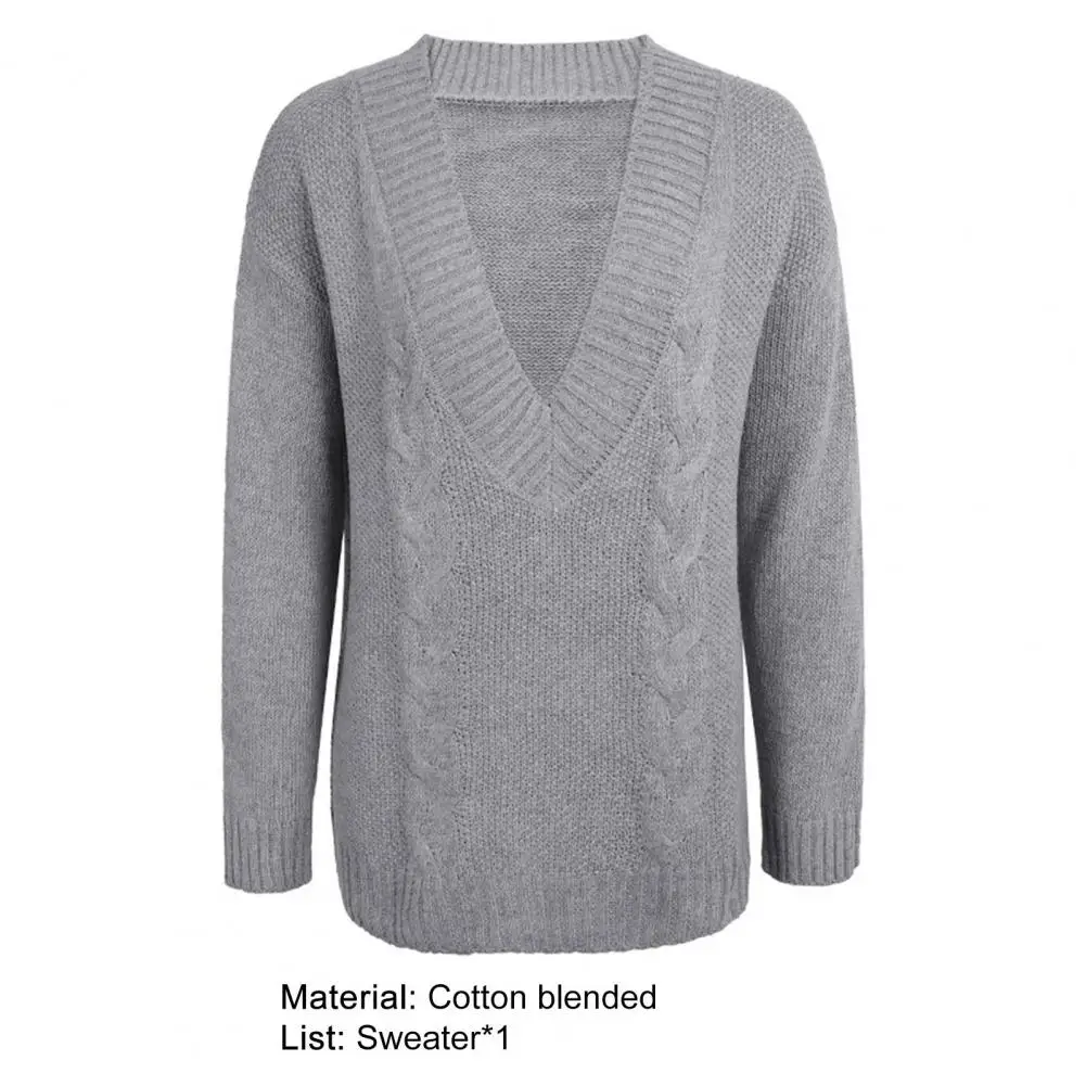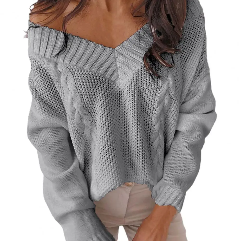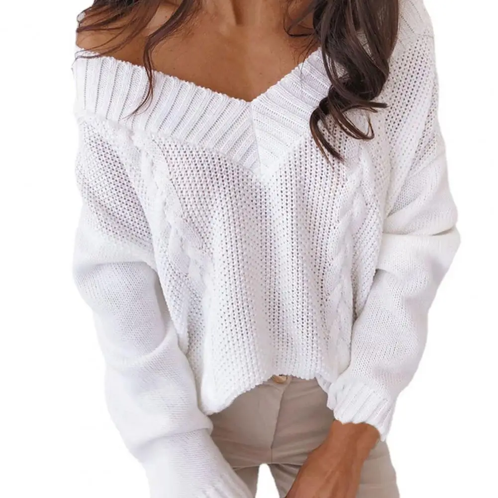 Новинка 2021, осенний свитер, свитер с глубоким V-образным вырезом и открытыми плечами, зимний свитер с длинным рукавом и узором в виде скрученных