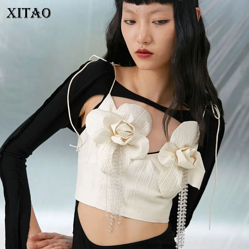 XITAOЛоскутная Женская однотонная майка на шнуровке с кисточками; Коллекция 2021 года; Сезон осень; Повседневная модная женская одежда в новом стиле; Универсальная женская одежда; GWJ0008