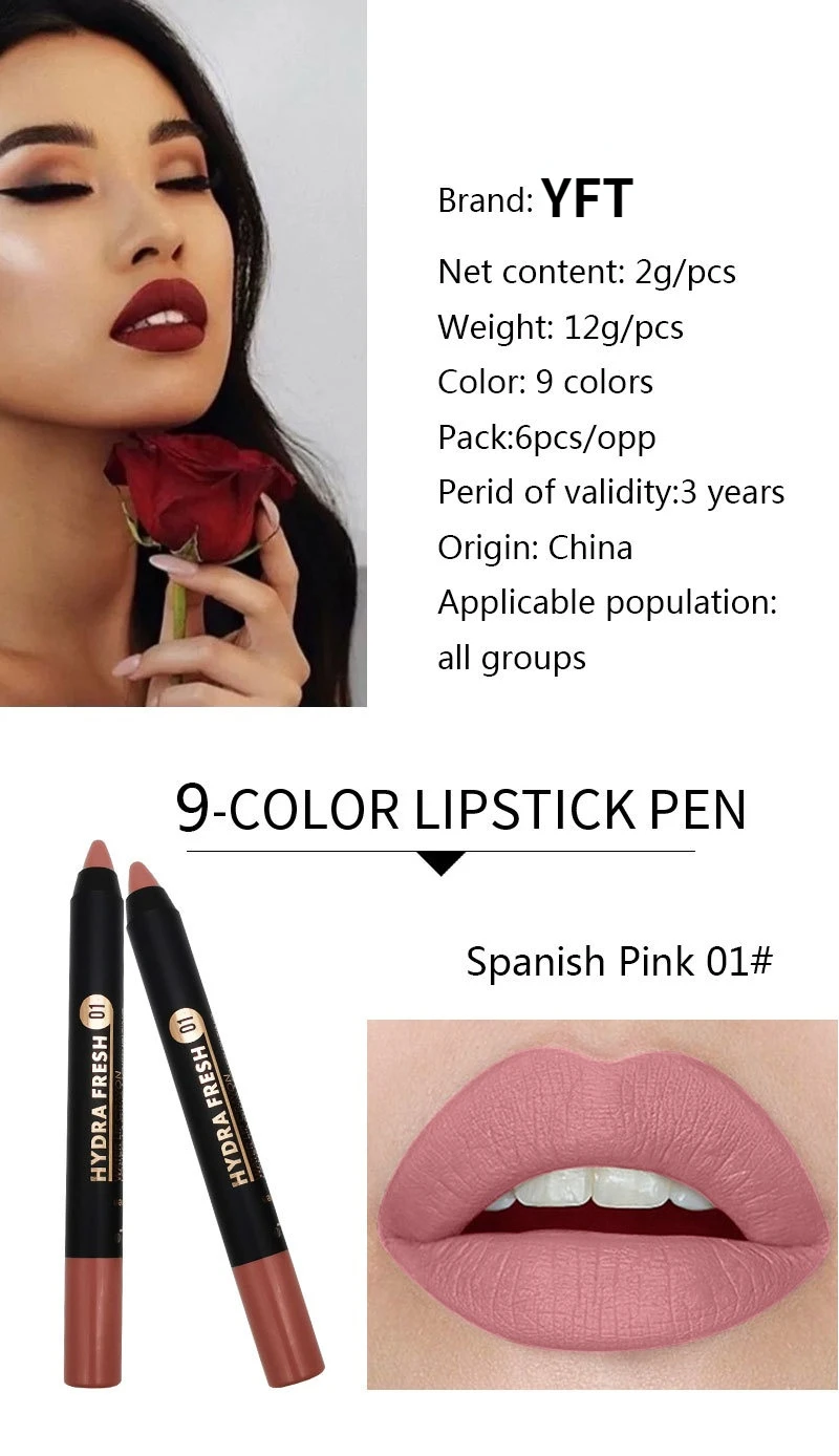 Бархатная матовая губная помада-карандаш, 9 цветов, стойкая губная ...
