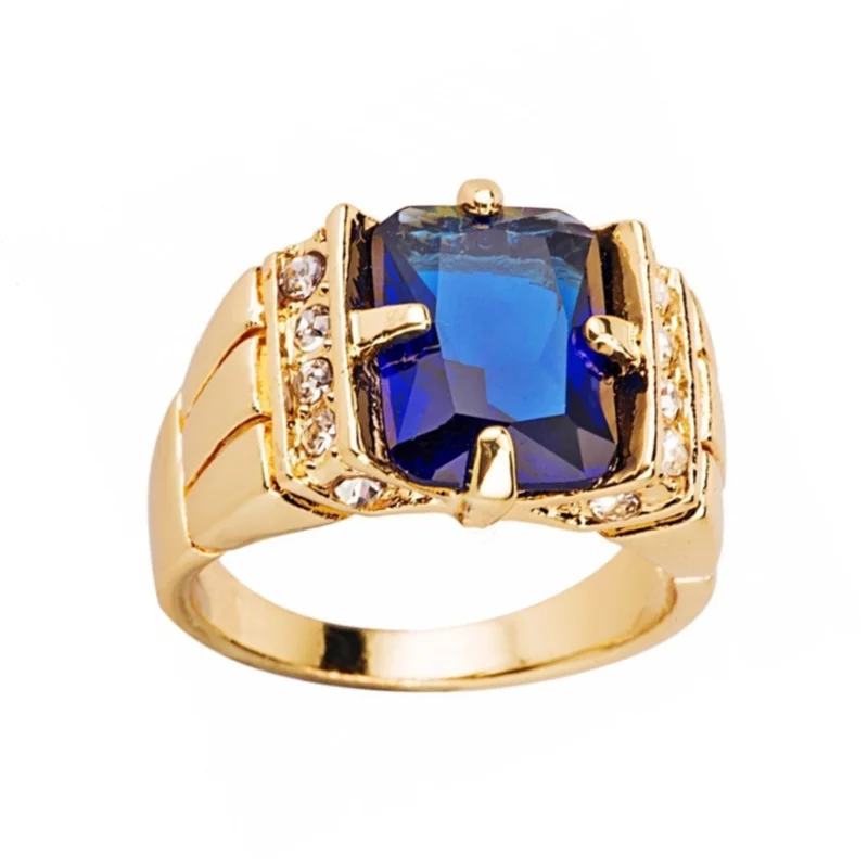 Мужская и Женская Мужская позолоченная цветная инкрустированная кольцо с голубым Цирконом Классическая Подвеска Banq...