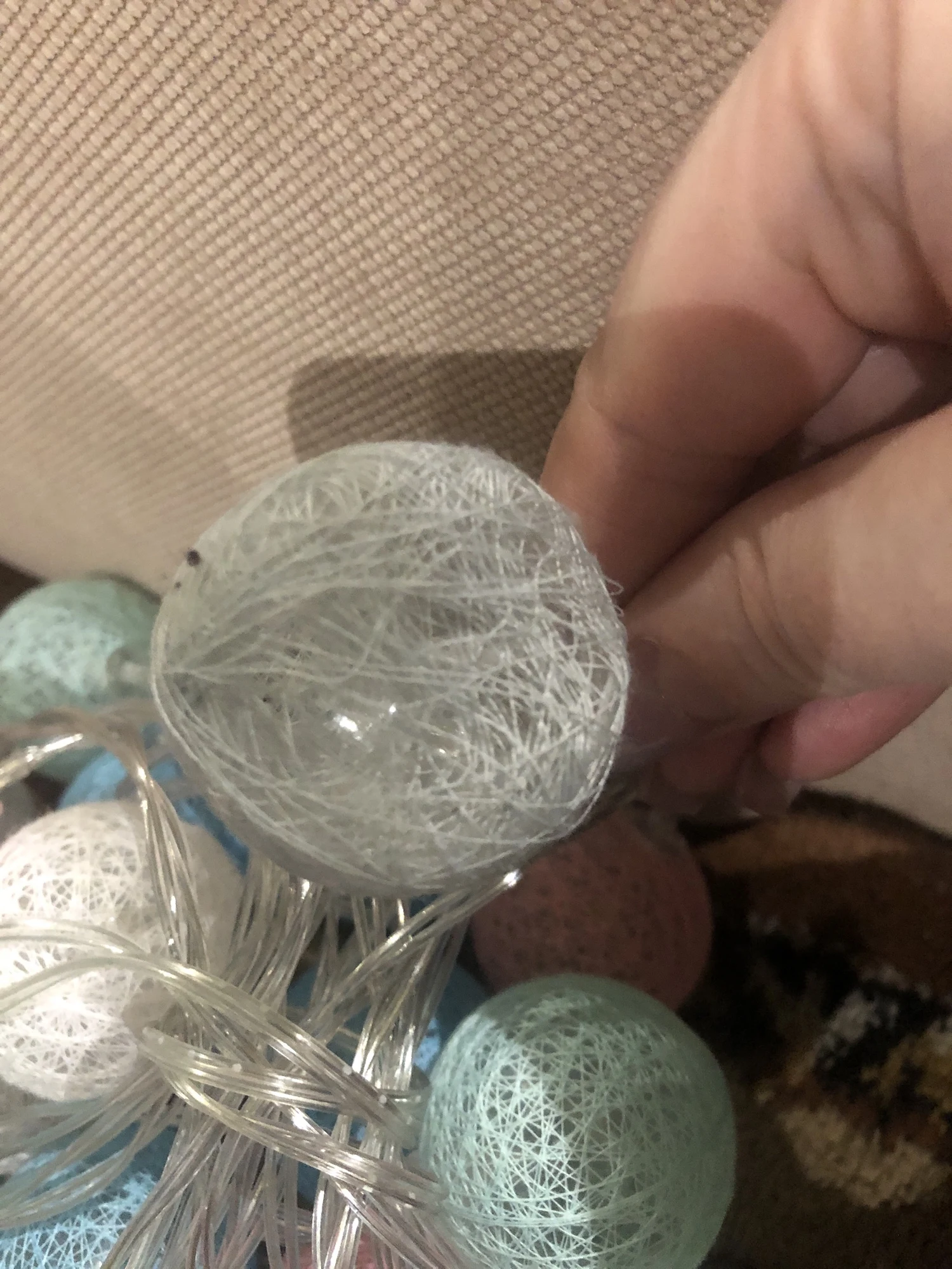 маленькая, хлипкая без разницы, какие цвета возьмете, всё равно фонарики будут жёлтыми и цвет шаров не видно работает через юсб - это большой плюс
