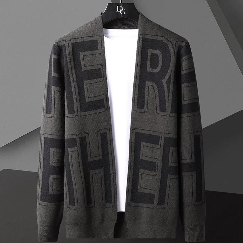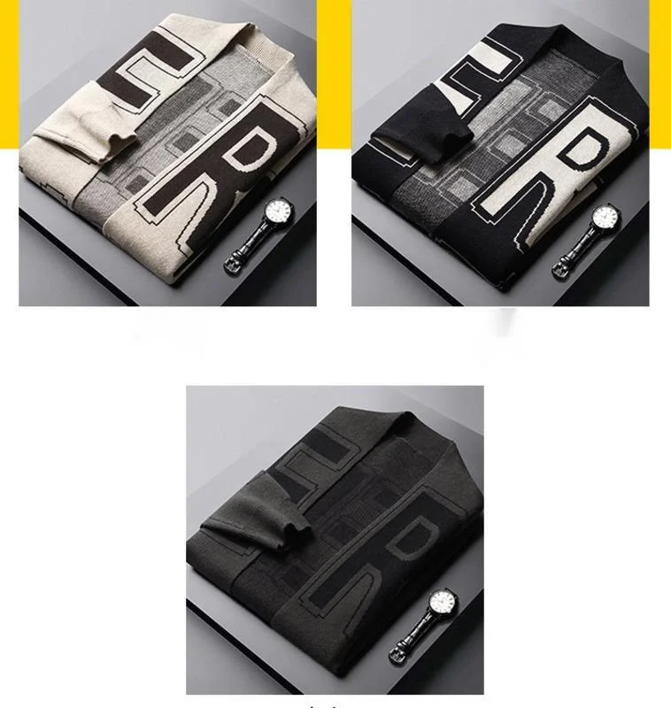 Кардиган мужской вязаный с большими лацканами, брендовый Модный Рос...