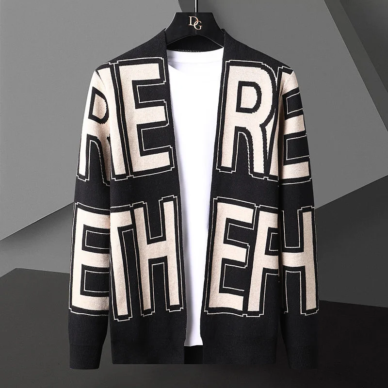 Мужской трикотажный кардиган с надписью, темно-синий кардиган в британском стиле, одежда для осени, 2019