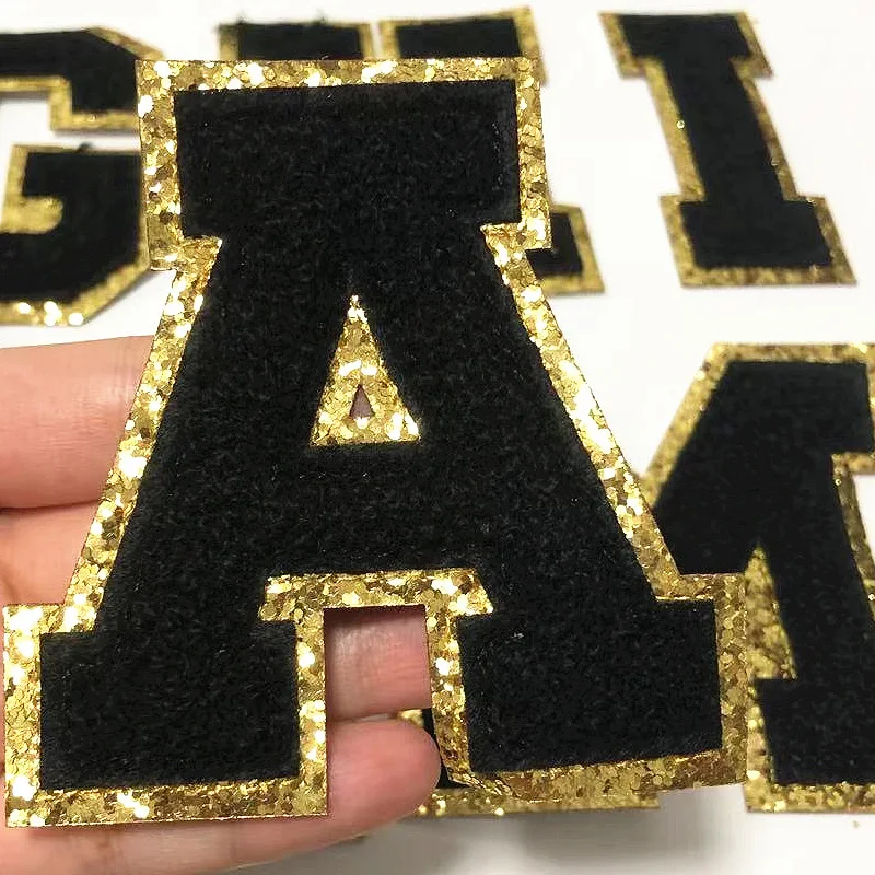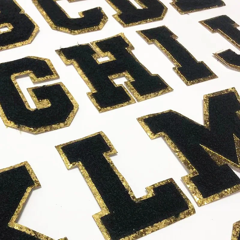 Блестящее полотенце Prajna с английским алфавитом, черная синель, 26 букв, нашивки, вышивка, значок сделай сам, Швейные аксессуары, аппликации