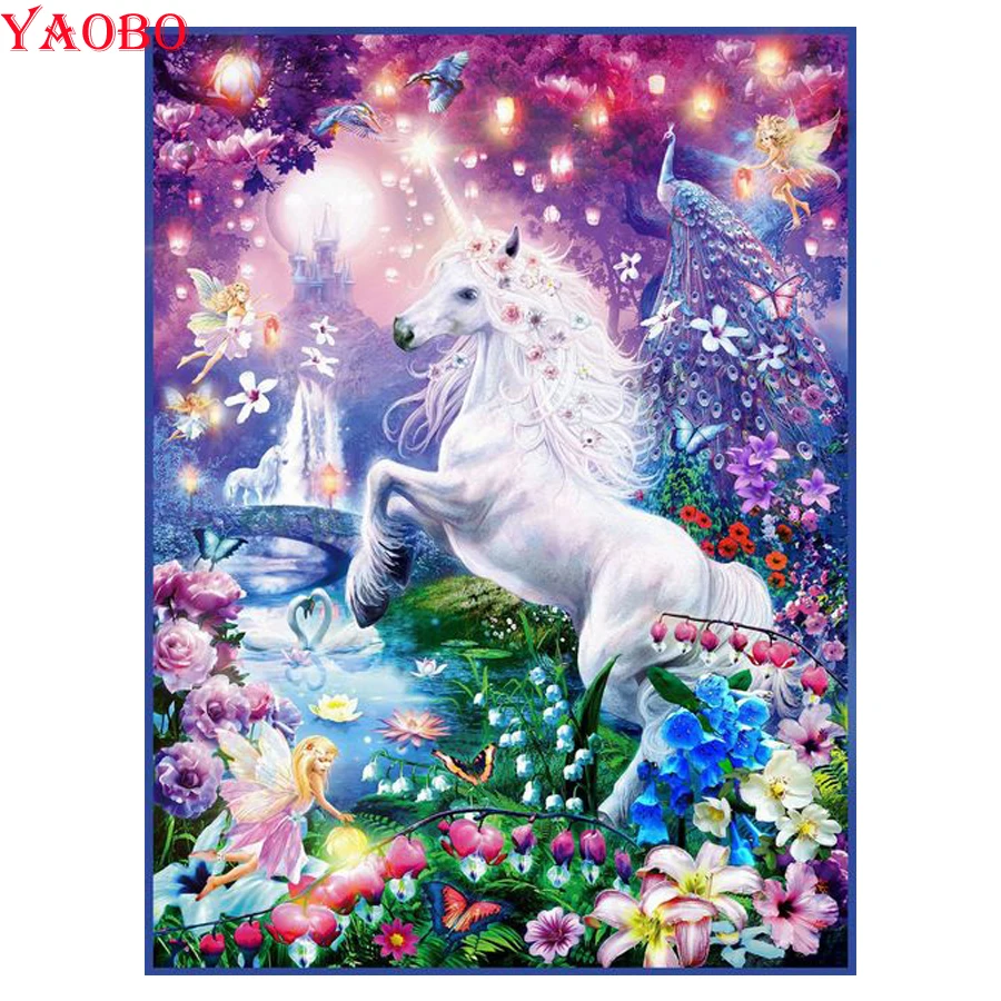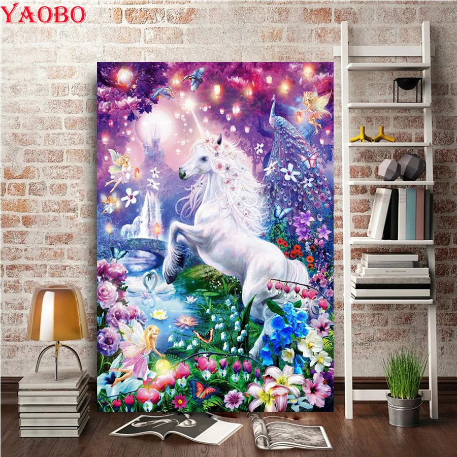 Картина с бриллиантами Фэнтези Феи Единорог павлин5d diy набор ручной вышивки полностью квадратная круглая дрель 5d Вышивка крестом домашний декор