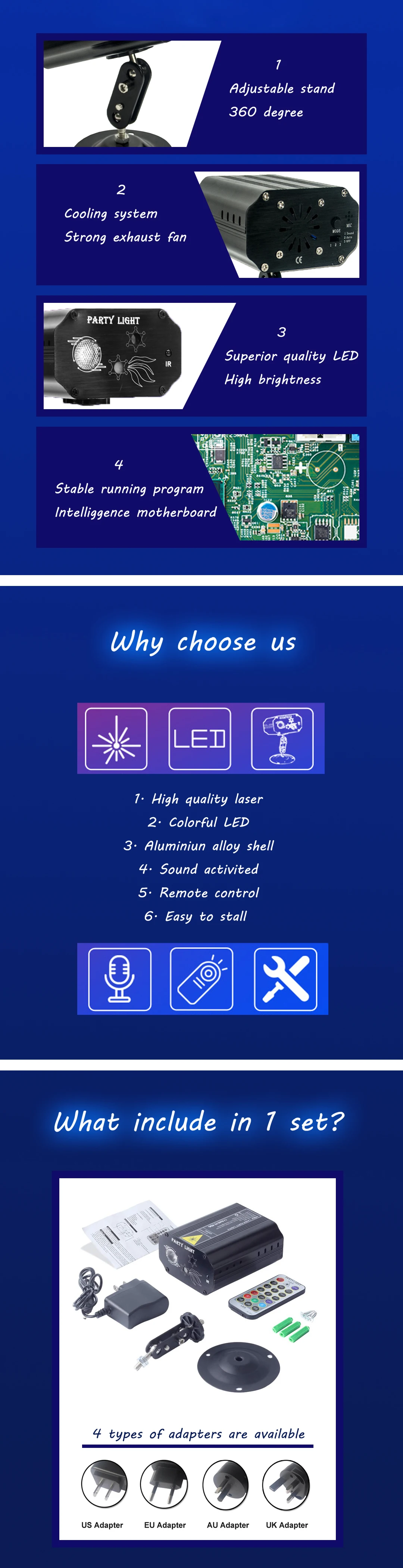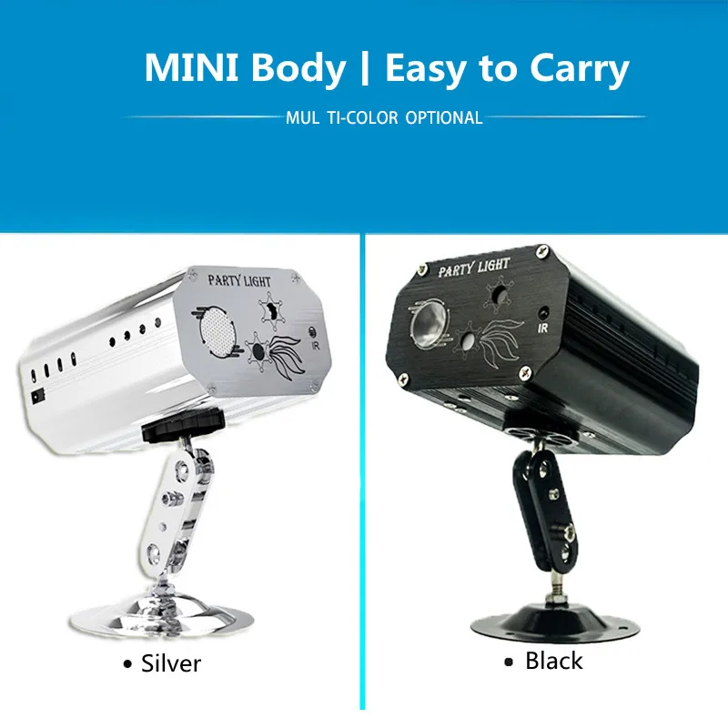 Мини-диско-светильник с 32 узорами, сценический прожектор для вечерние с голосовым управлением, лазерный USB-проектор, стробоскоп с пультом дистанционного управления для вечерние