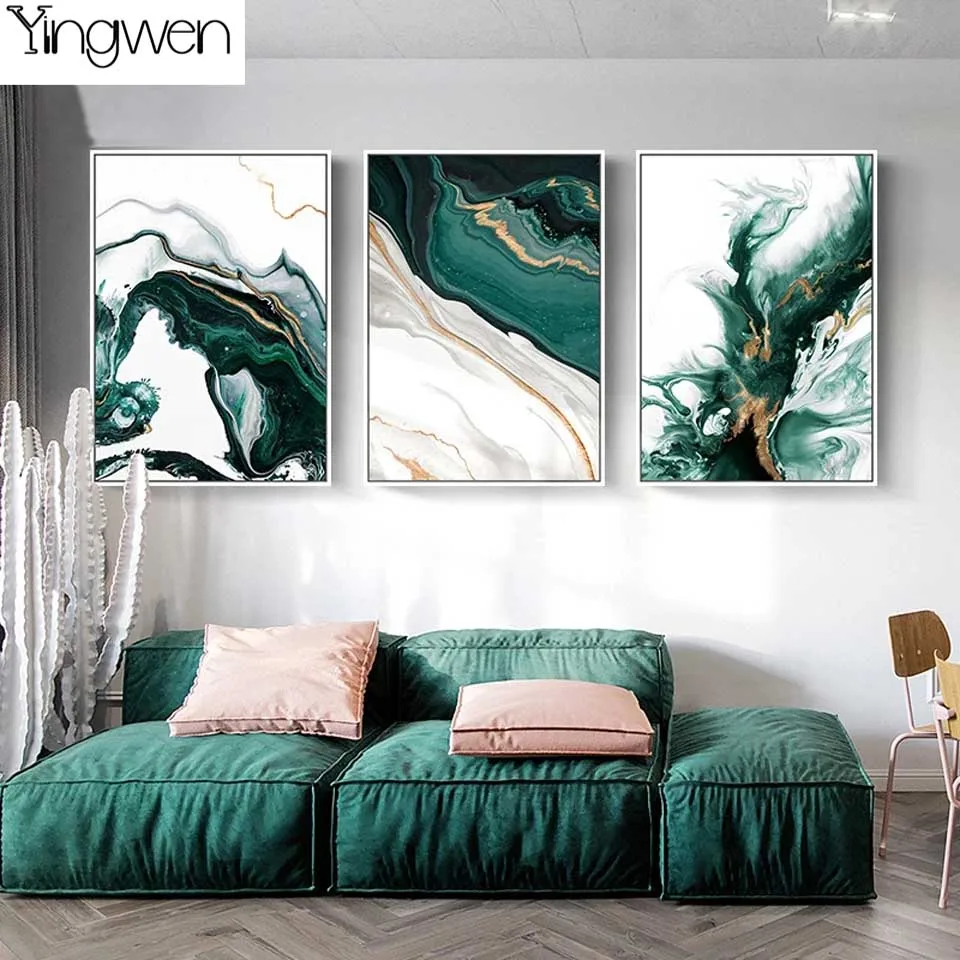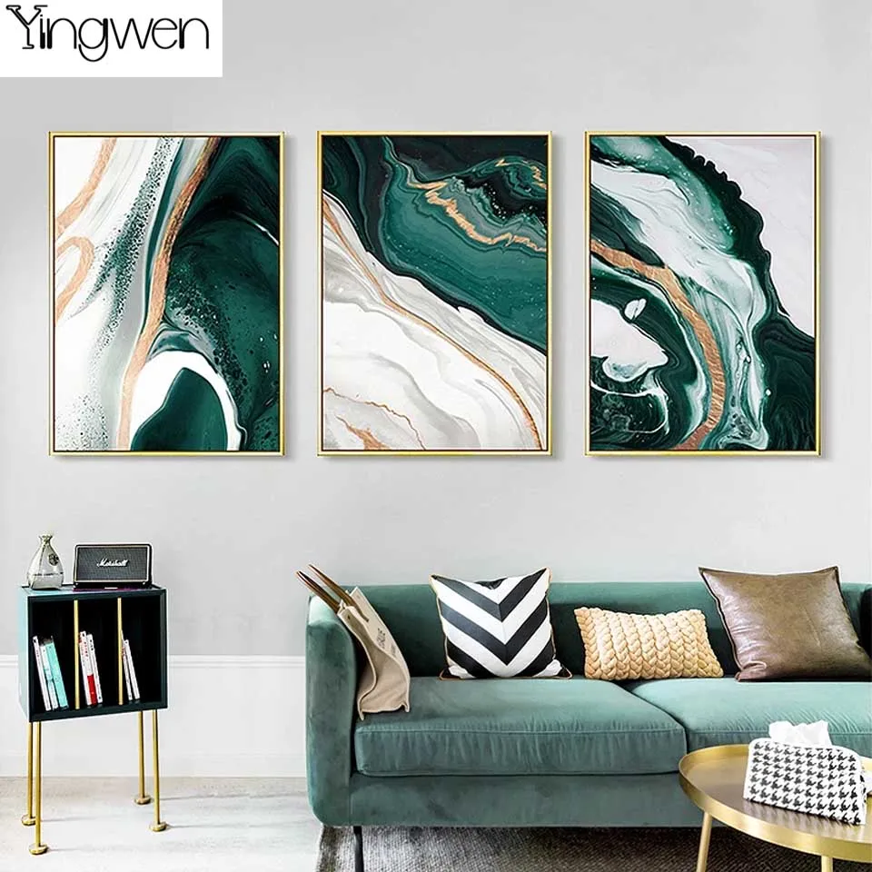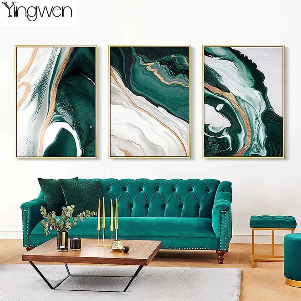 5D DIY Алмазная картина современная абстрактная Золотая фольга линии зеленый художественная стена полная Алмазная вышивка мозаика Вышивка крестом домашний декор
